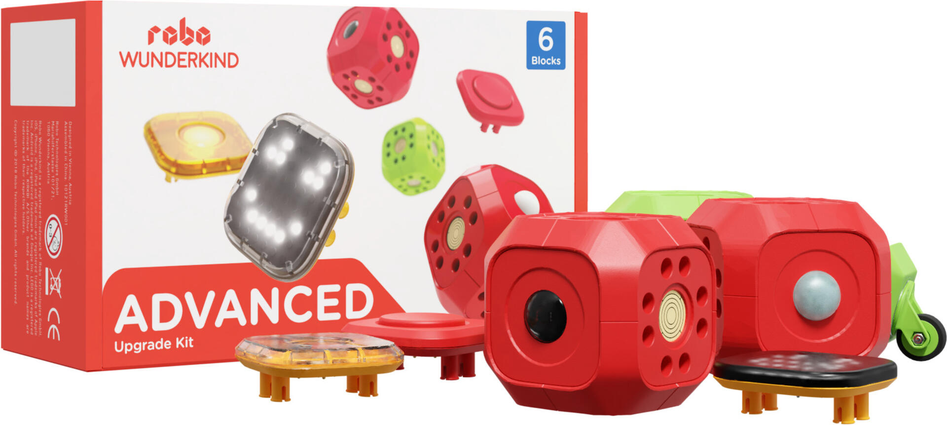 Uppgradering till Robo Wunderkind Education Kit. Med setet ges fler möjligheter programmeringsprojekt för eleverna. Innehåller rörelsesensor, ljussensor, LED-display, RGB-LED, knapp, litet hjul, kontakter samt legoadaptrar.