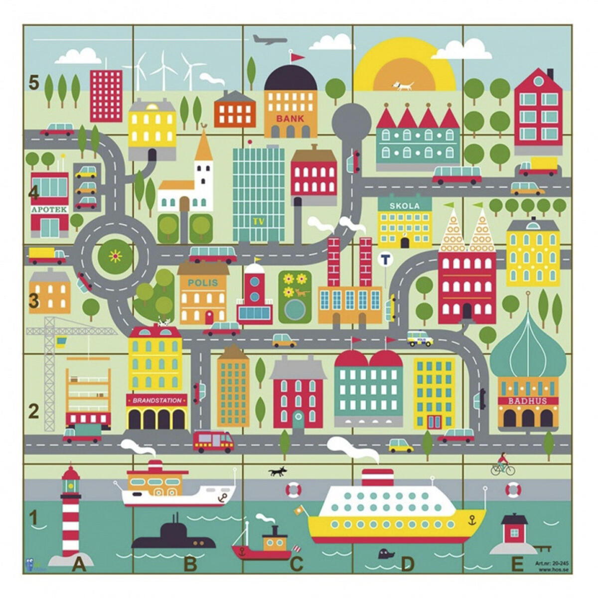 Spännande matta med svensk text för våra populära golvrobotar Bee-Bot och Blue-Bot. Här finns möjlighet att besöka polisen, brandstationen, hamnen, skolan och mycket mer. Gör programmeringen ännu roligare med berättelser och uppdrag som barnen får följa. Mattan är svensktillverkad, flamsäker och fri från giftiga ftalater. Varje ruta på mattan motsvarar 15 cm.