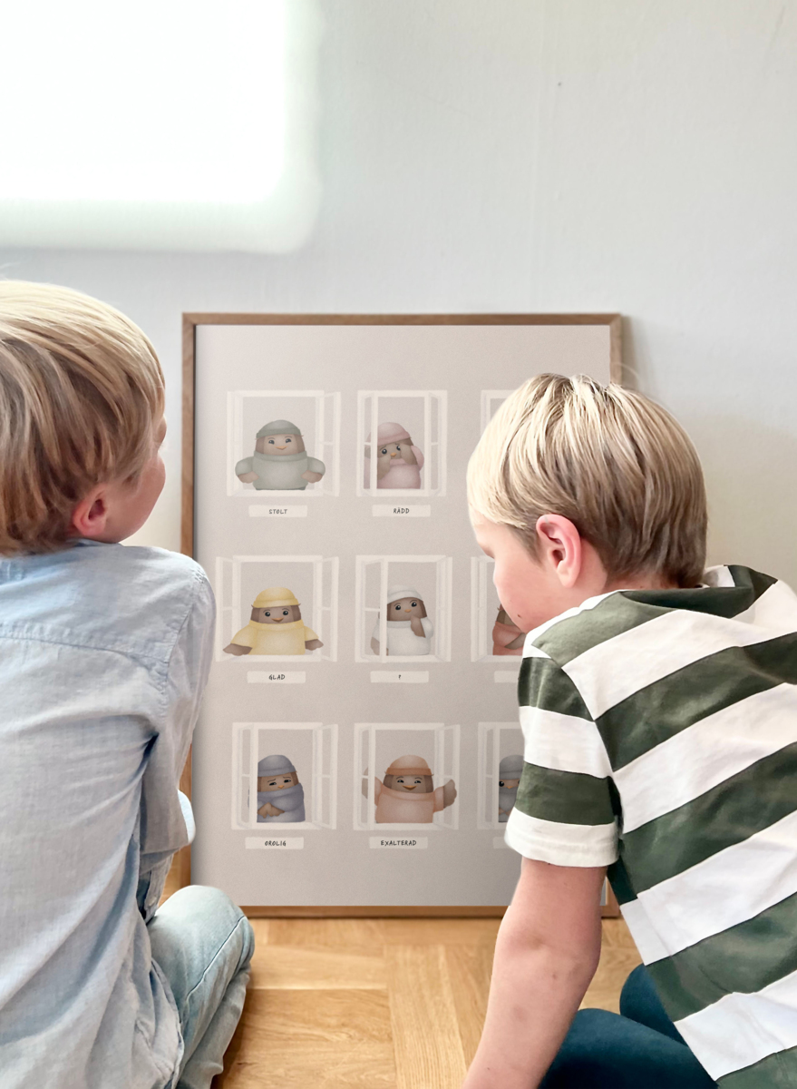 Lär barn att lära känna sina känslor. Producerad på miljövänligt, matt premiumpapper 200 g. Pappret är åldersbeständigt och märkt med EU Ecolabel och FSC. Svensktillverkat hos Svanencertifierat tryckeri. Ram eller posterhängare köps separat.