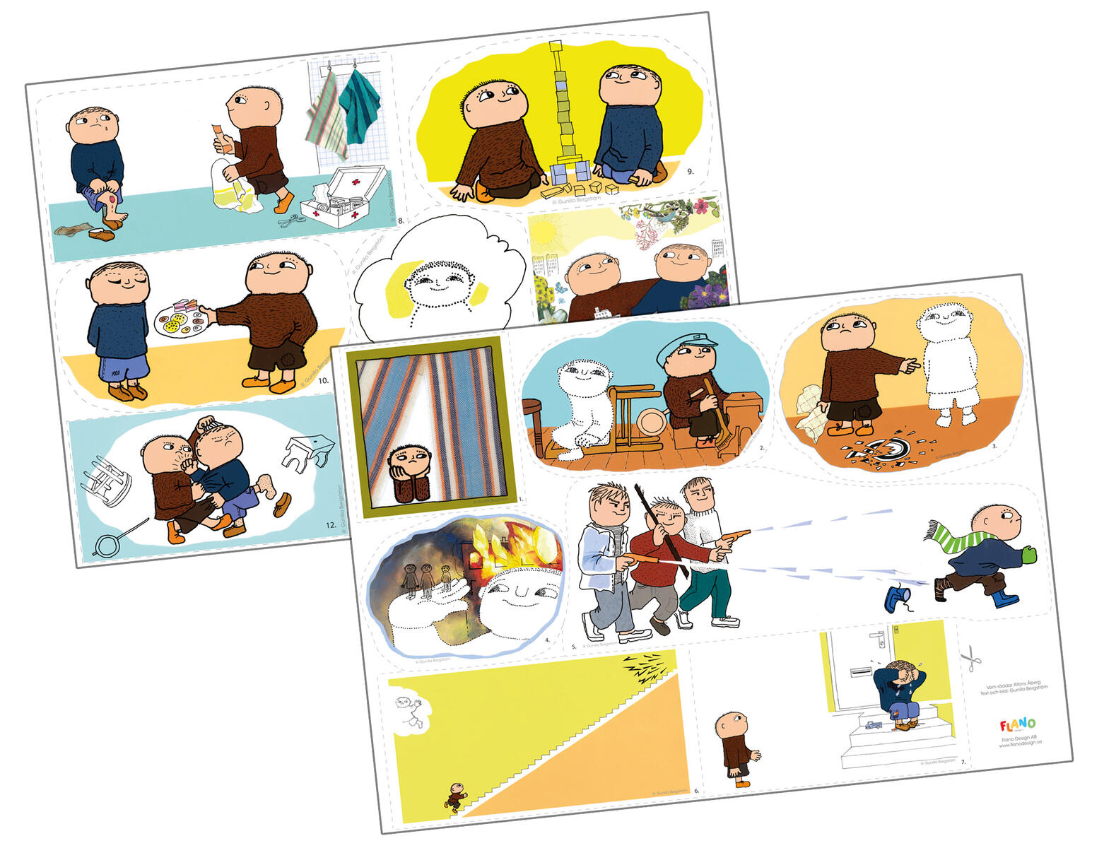 Ett set med två kompissagor som leder in på samtal om hur man är en bra kompis, om vänskap och konkurrens, relationsproblematik och starka känslor. Färdigtryckta flanobilder. Svensk sagotext ingår. Av FSC-märkt papper. PVC-fri.