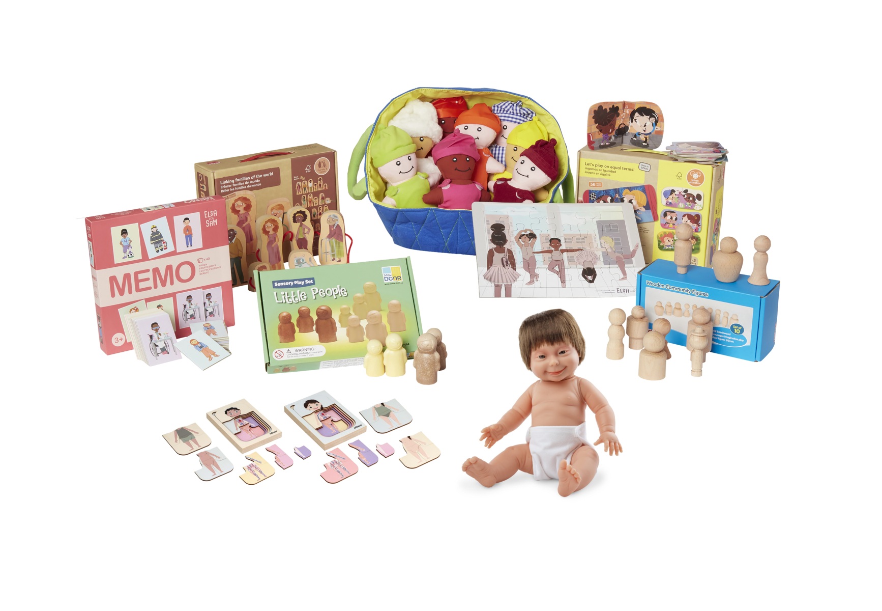 Ett stort paket med leksaker för att på ett inkluderande vis leka och prata om vad som gör oss olika och lika med syftet att få en ökad förståelse för varandra. Från 3 år.