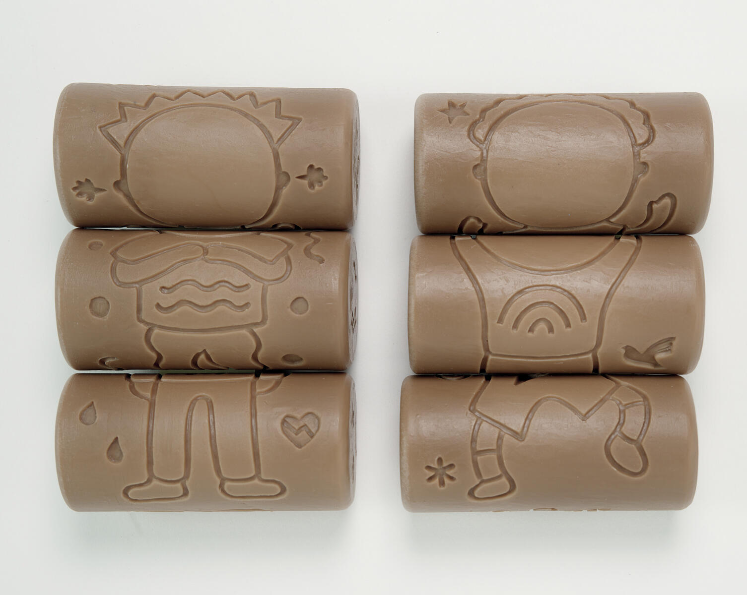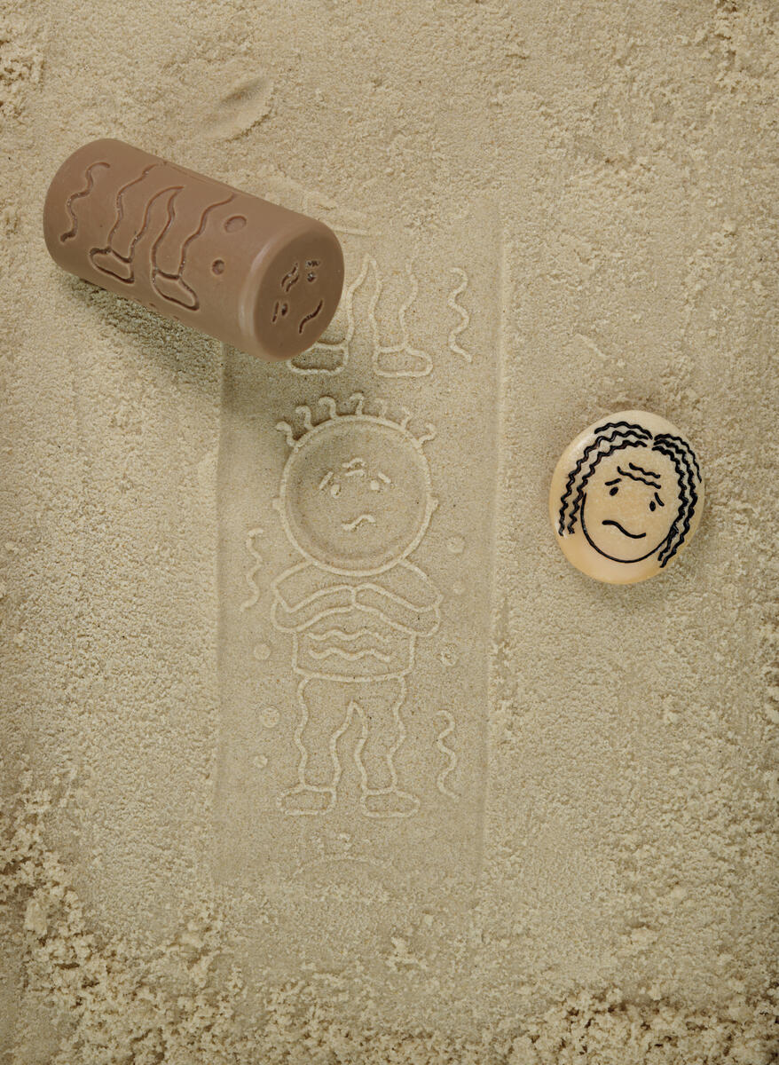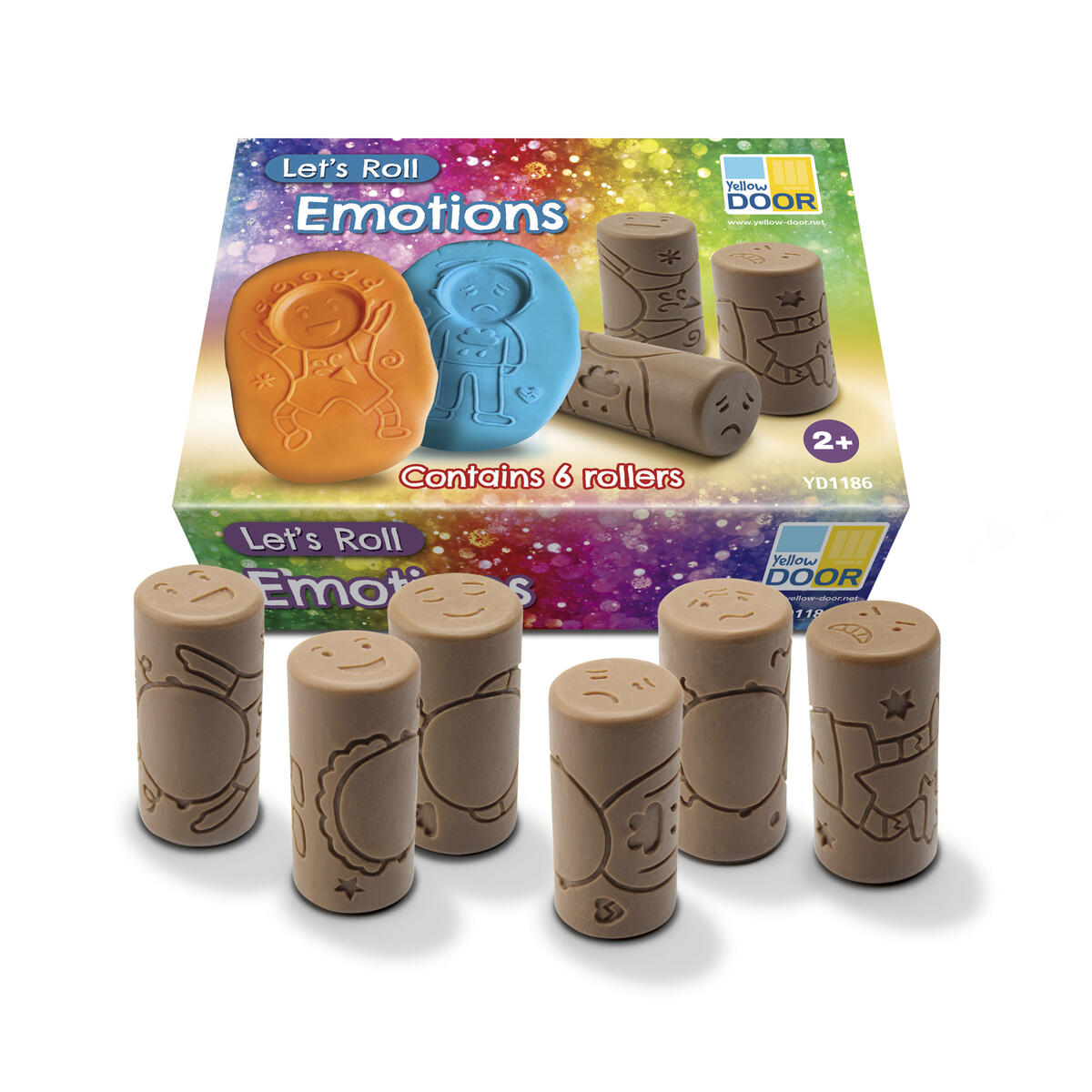 6 st. Smarta rullar som hjälper barnen att prata och känna igen 6 grundkänslor: glädje, nyfikenhet, sorg, rädsla, ilska och lugn. Rulla den i lera eller sand för att skapa en kropp och stämpla ditt ansiktet för att få uttrycket. Passa på att prata om hur kroppsspråket också kan tala om hur man känner inombords. Kan användas utomhus. Mått: 7,2x3,4 cm. Av stenmix. PVC-fri. Från 2 år.