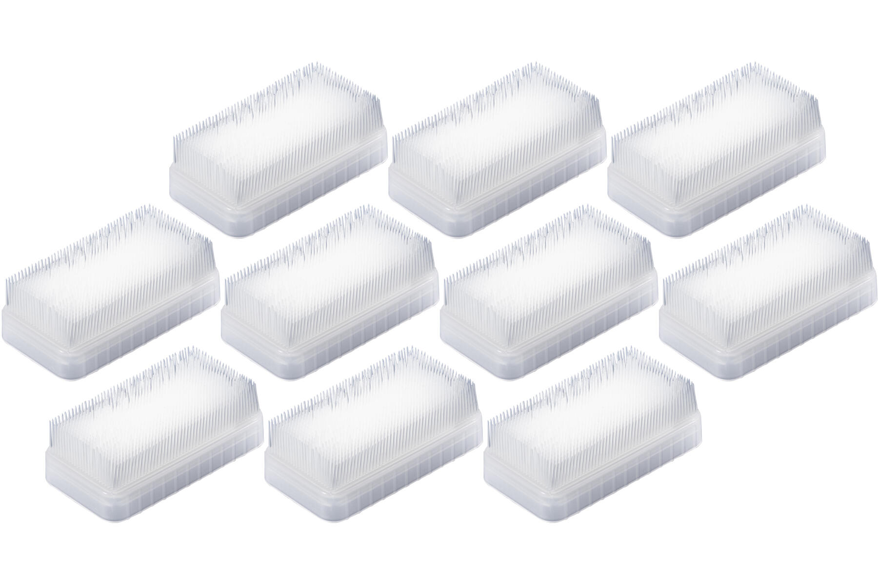 10 st. Mjuka taktila borstar som ger sensorisk stimulering. De kan användas för en lättare massage på olika delar av kroppen vid bådel hypo- och hypersensitivitet. Mått: 8x4 cm. Av PE.
