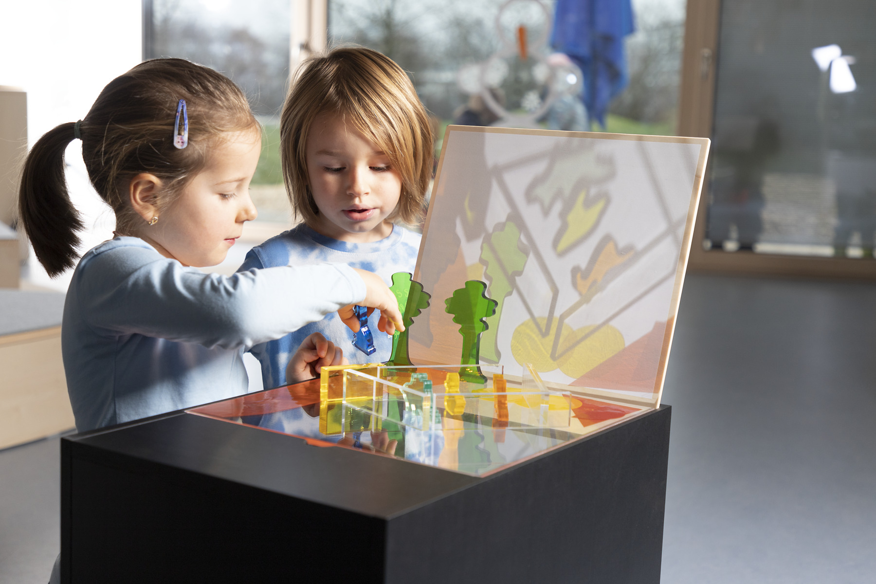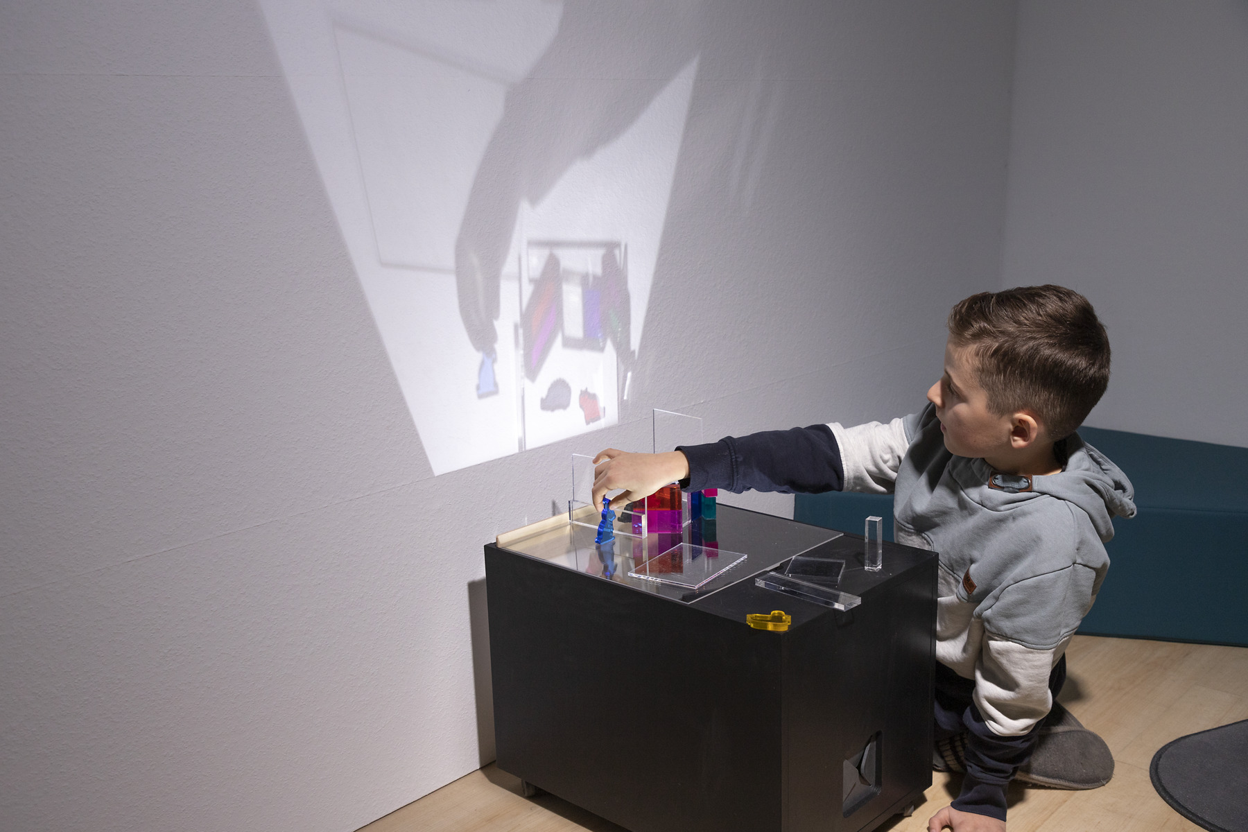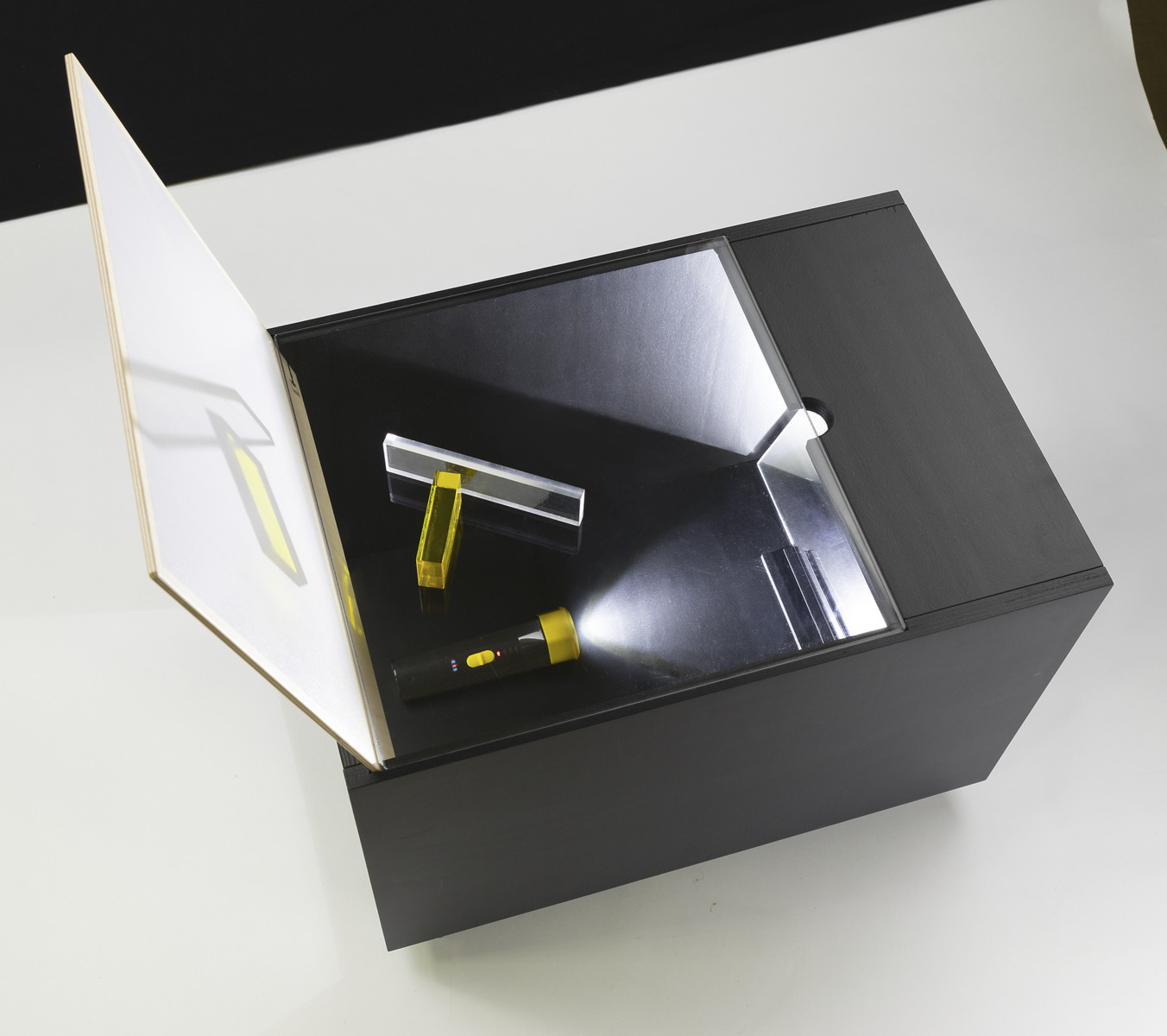 En låda med många möjligheter att undersöka vad man kan göra med ljus. Lådan är lätt att flytta och har två projiceringsmöjligheter. Med en vanlig ficklampa (ingår ej) kan lådan användas varsomhelst utan strömkälla. Mått: L50xB35xH37 cm. Från 3 år.