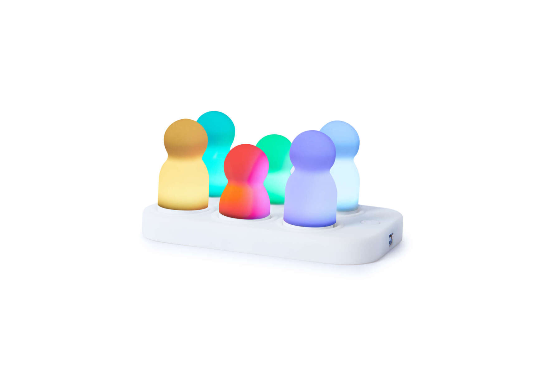 6 st. Lysande färgglada figurer som laddas i en dockningsstation. De lyser i mörkret och gör leken spännande. Mått: 6, 7 och 8 cm höga, 4 cm i diameter. Fullt laddade efter 2 timmar och sedan lyser de i 4 timmar. Innehåller 3 små figurer och 3 stora figurer, 1 laddningsstation samt en USB-B-A-abel. Av ABS-plast. Från 10 månader.