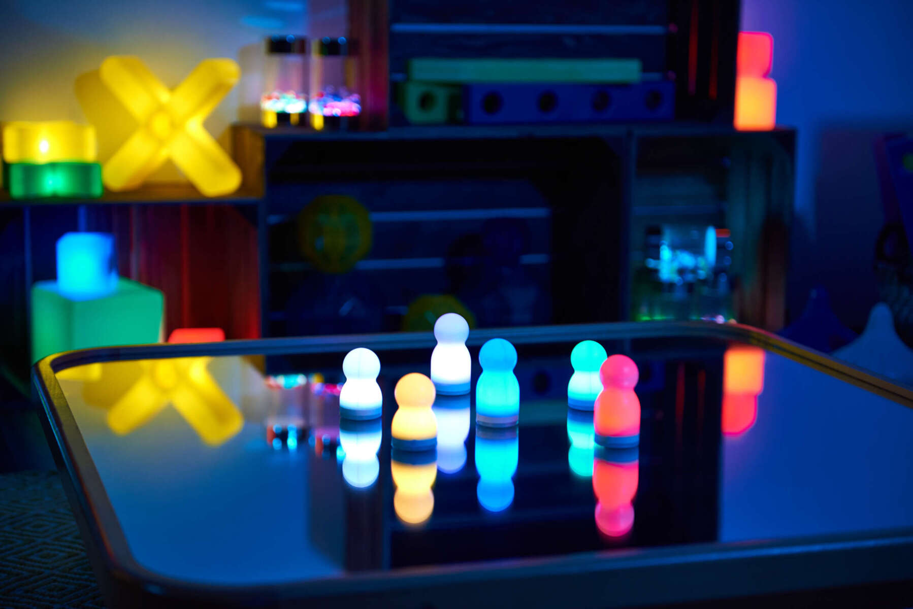 12 interaktiva stavar som lyser när man knackar på dem. Lär om orsakssamband och få respons på en rörelse när den tänds (lyser i 3 min). Stavarna passar till konstruktion, matematik, sensoriska övningar, rollek, ljusbord etc. De är också roliga att använda i mörker. 6 olika färger. 3-4 h laddtid ger 6-8 h lystid. Laddas med USB-kabel. Mått: 21,2x3,3 cm. PVC-fri. Från 10 månader.