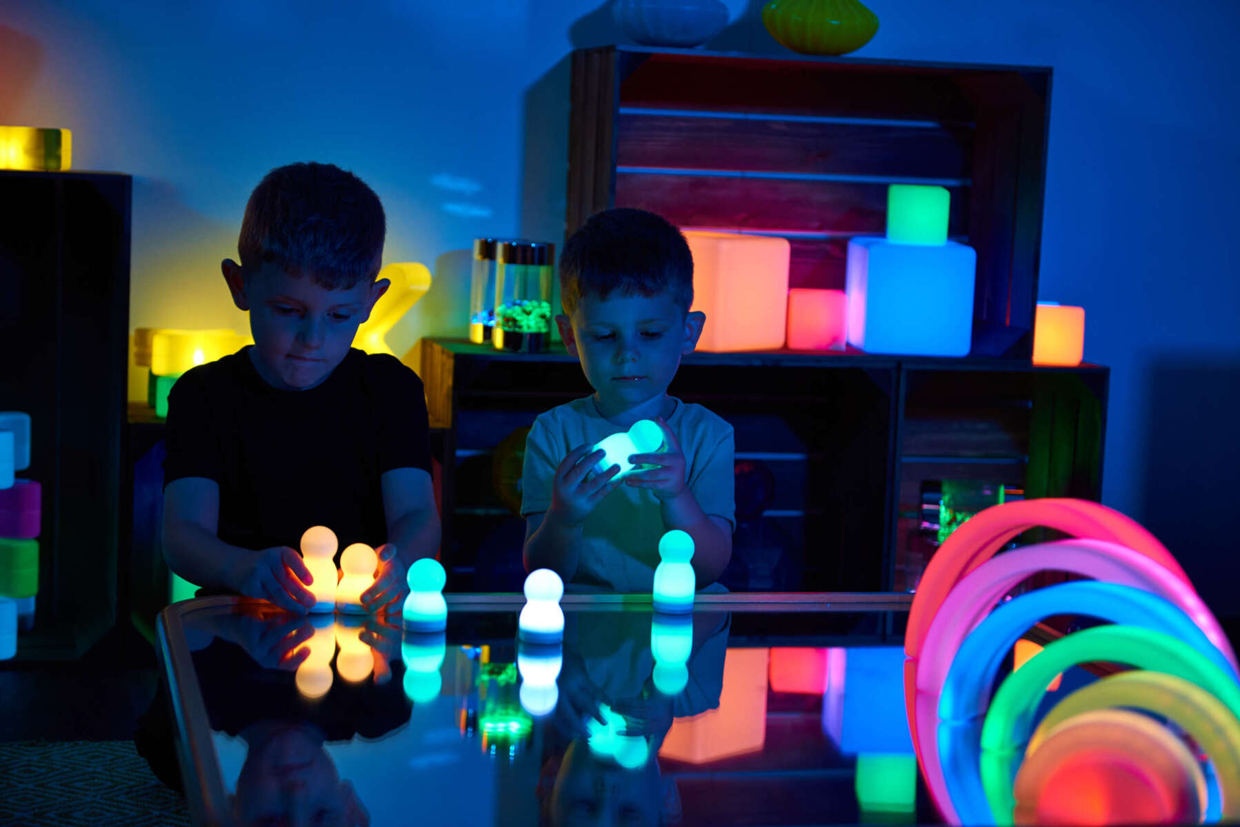 6 st sensoriska lysande små kupoler. Färgerna skiftar mjukt och långsamt och ger en lugnande effekt. 1st CR2032-batteri / kupol ingår. Mått: 4x4 cm. PVC-fri.