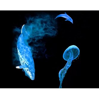 Projicerar hologram med imponerande ljud. Koppla till en högtalare med Bluetooth så hörs lejonet ryta. Kontrollera videon med en app på mobilen eller plattan. Levereras med 30 unika videor. Byt ut dem till andra eller ditt eget material som kan laddas upp. Mått: 52 cm.