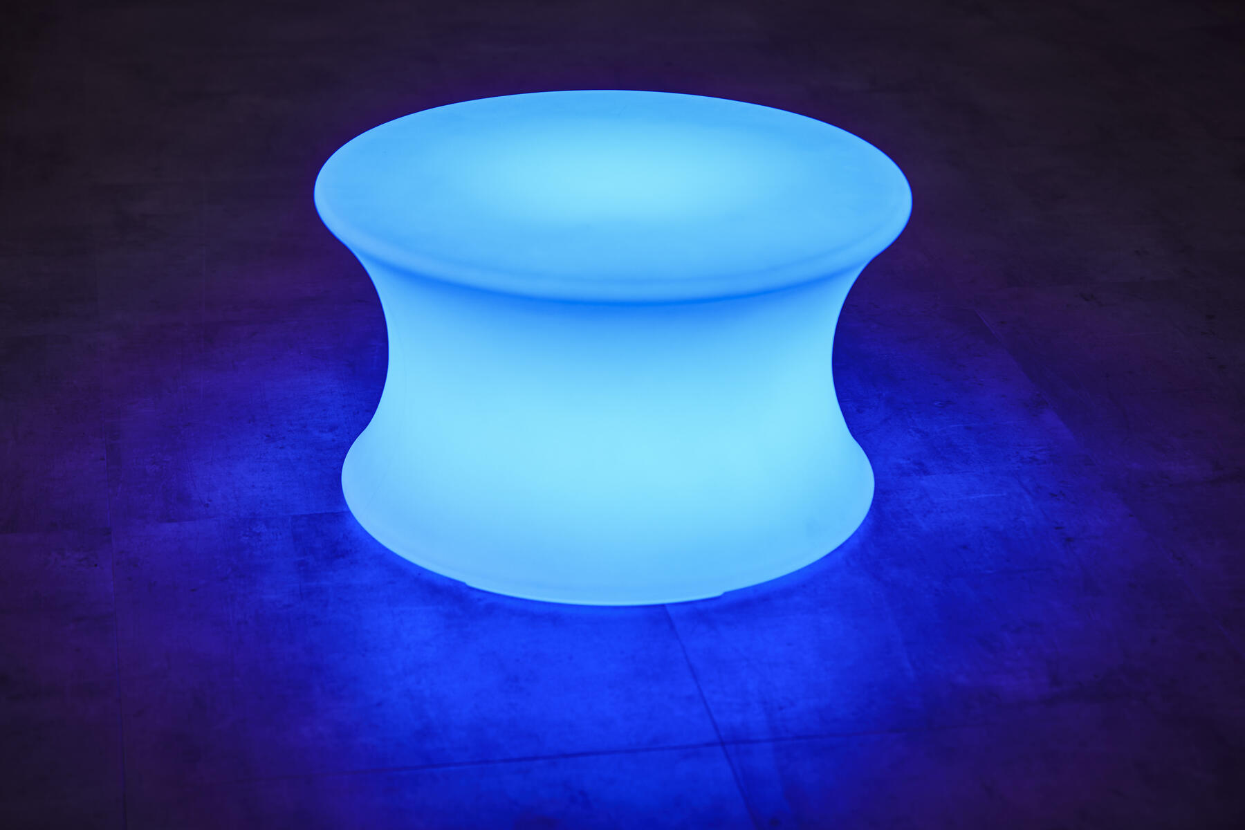 Detta lysande bord kan ställas in på en färg eller att skifta mellan 16 olika nyanser. Används på egen hand eller i samarbete. Robust bord som är lätt att flytta. Barnen når ner till botten vilket gör det möjligt att leka och utforska lera, färg och vatten. Efter 8 timmars laddning kan aktivitetsbordet lysa i 5-10 timmar beroende på ljusprogram. Styrs av fjärrkontroll. Energiklass A+, kapslingsklass IP65. Mått: H50 och ø 75 cm, djup på aktivitetsytan 15 cm. Material: PE. PVC-fri. Används under vuxens översikt.