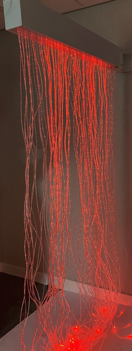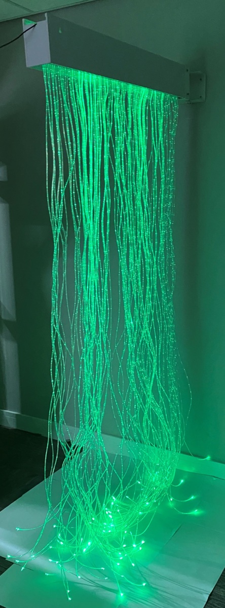Ett draperi med optiska fiber som skapar en magisk bakgrund för olika miljöer. Monteras på väggen eller ovanför ett fönster för att skapa ett färgskiftande draperi. Fjärrkontroll medföljer. Konsolens mått: 90x10x14 cm.
