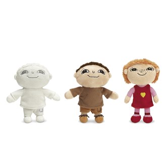 6 st. Friendy är unika dockor med 6 olika känslor: glad, arg, rädd, ledsen, sur och lugn. Friendydockorna hjälper barn att medvetandegöra och möta känslor genom att få bekräftelse och hjälp att sätta ord på känslorna. Beställ en utförlig handledning med många bra idéer direkt från kundtjänst. Mått: 25 cm. Material: Bomull, fyllning polyester. PVC-fri. Tvättas i 40 grader, dropptorkas.