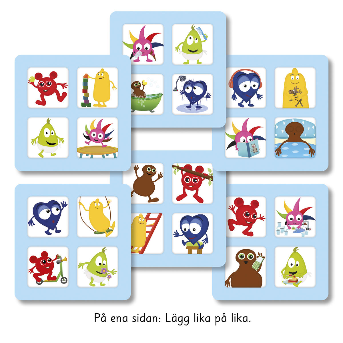 Doddo är arg, Diddi är trött och Dadda är glad. Bildkorten passar för att samla på brickorna på två olika sätt: lika på lika eller sorteras per figur. Spelet bygger barnets ordförråd med fokus på samspel, ökar förståelsen för egna och andras känslor samt lockar till eget berättande. Innehåll: 6 dubbelsidiga brickor och 18 kort. PVC-fri.