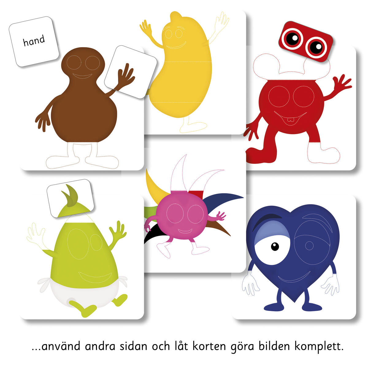 Doddo är arg, Diddi är trött och Dadda är glad. Bildkorten passar för att samla på brickorna på två olika sätt: lika på lika eller sorteras per figur. Spelet bygger barnets ordförråd med fokus på samspel, ökar förståelsen för egna och andras känslor samt lockar till eget berättande. Innehåll: 6 dubbelsidiga brickor och 18 kort. PVC-fri.