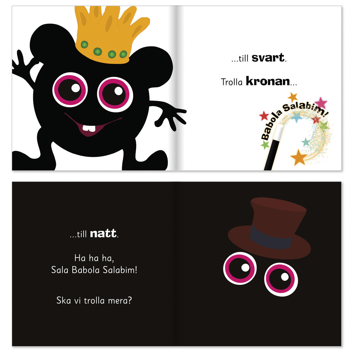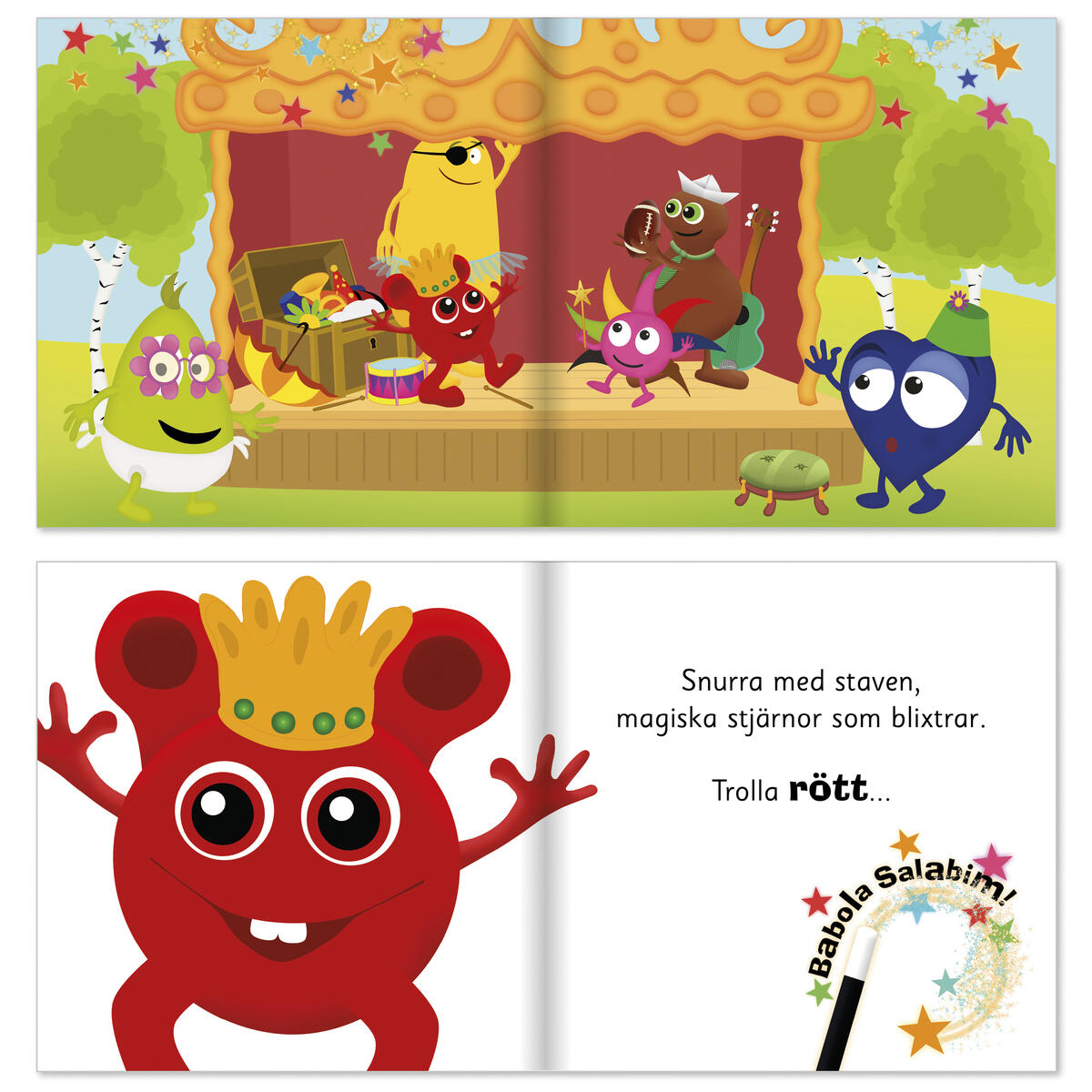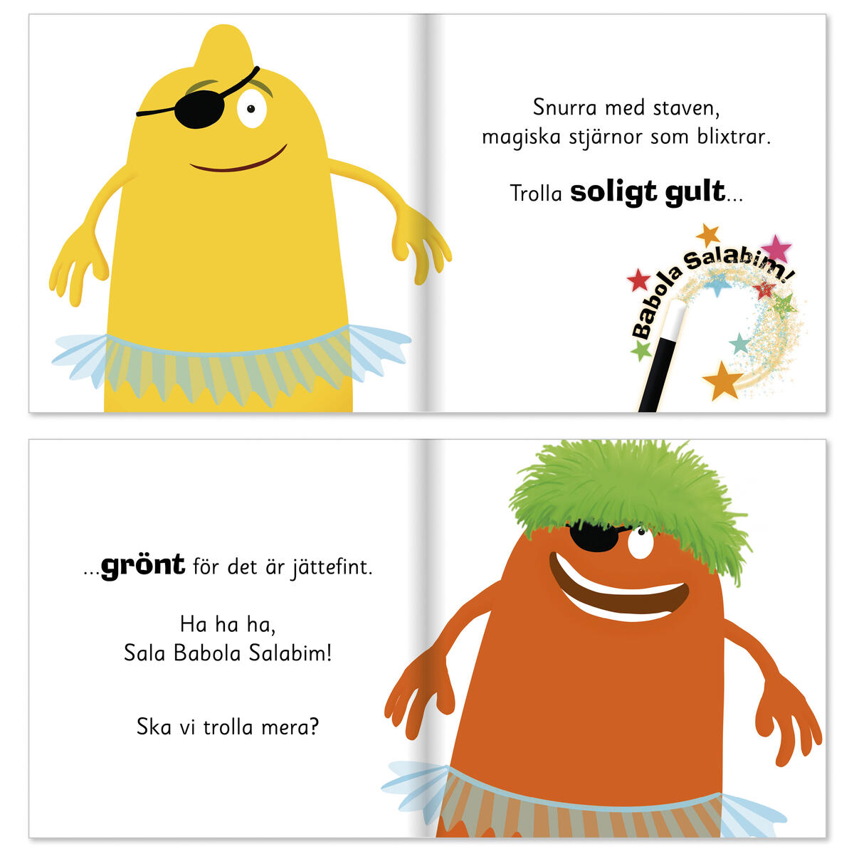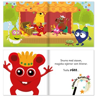 48 sidor. Kom så trollar vi med Babblarna! Vet du hur det går till när Babba blir Gagga och Dadda blir Sassa? Ja, helt rätt, det är något magiskt... Läs gärna boken med en riktig trollstav så blir det ännu roligare. (Längst bak i boken finns en sida att klippa ut, rulla ihop och limma eller tejpa så har du trollstaven du behöver). Babola Salabim! Nu börjar magin... En efterlängtad bok där Babba, Bibbi, Bobbo, Dadda, Diddi och Doddo är med, men trollas till figurerna Gagga, Giggi, Goggo, Sassa, Sissi och Sosso. Texten i boken är baserad på låten "Babola Salabim" som är med på Babblarnas första album. Boken blev 2017 utvald som Outstanding book av IBBY, International Board on Books for Young people. Mått: 20x20 cm. Av FSC-märkt papper. PVC-fri.