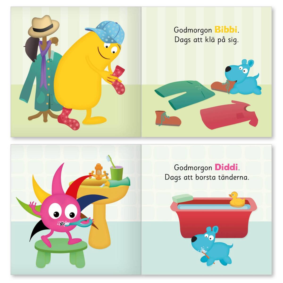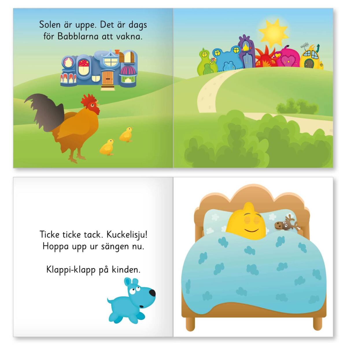 Vi får följa med hunden Vovvo runt och väcka alla vännerna. Babblarna gör precis samma saker som barnen gör på morgonen – klär på sig, äter frukost, borstar tänderna etc. På sista uppslaget finns teckenillustrationer (TAKK) och sångtexten till "Kuckelisju! Klonks godmorgonsång". 36 sidor, 20x20 cm.