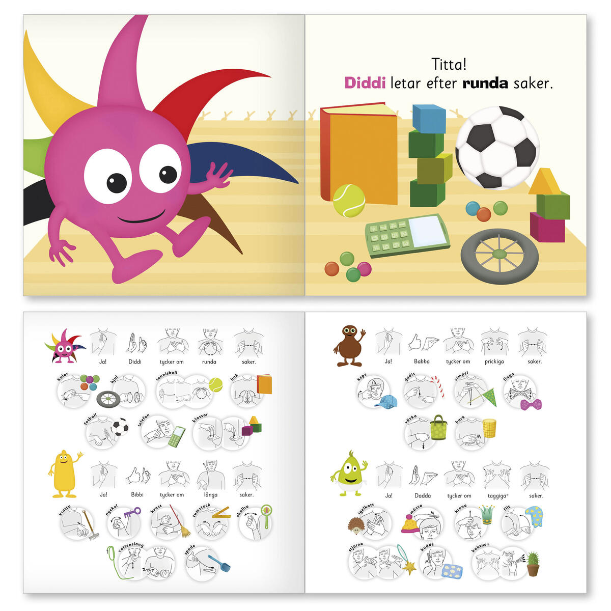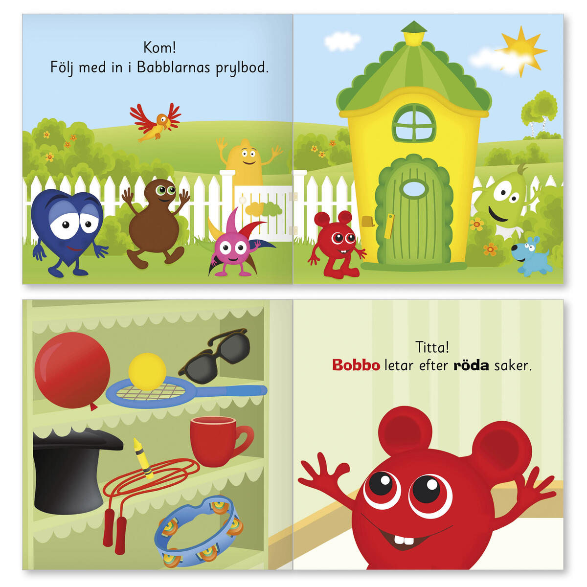 Följ med in i prylboden och hjälp Babblarna att välja bland alla roliga saker! Det finns många: röda och blå, små och stora, runda och fyrkantiga, korta och långa, prickiga och randiga, taggiga och mjuka. PVC-fri.