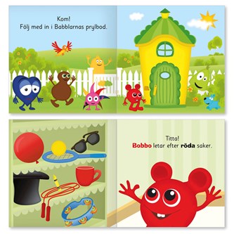 Kartongbok i stort format. I Babbas byrå finns massor av saker. Men vems är alla saker? Hjälp Babba att dela ut sakerna till sina vänner. Boken I Babbas byrå fokuserar särskilt på begreppet ”Vems?” men också på de små men viktiga vokal- och konsonantskillnaderna i Babblarnas namn. Längst bak finns teckenillustrationer för orden i boken. 34 sidor, med giftfritt papper i tjock och tålig kartong, mått 24x24 cm. PVC-fri.