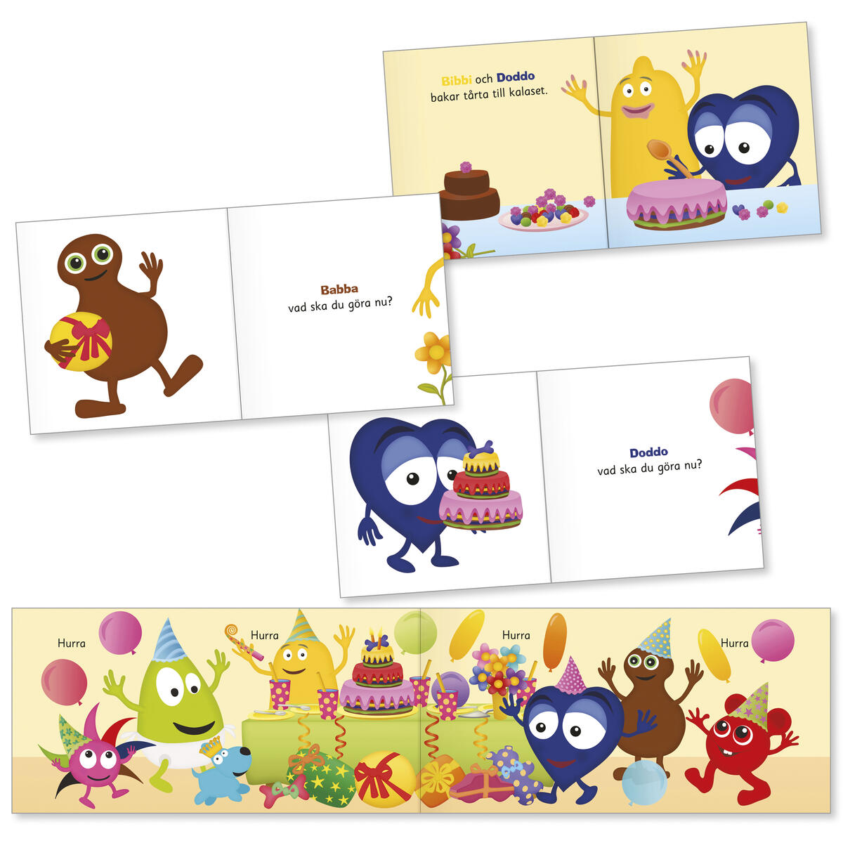 36 sidor. Böckerna om Babblarna har kommit till för att ge barn en extra skjuts i sin tidiga språkutveckling. I denna boken blir det födelsedagskalas i Babblarnas hus. Men det är en hel del som måste göras innan det börjar. Följ med och ordna med paketen, blommorna, ballongerna, dukningen och så tårtan förstås. Som vanligt i Babblarnas böcker har barnet sin tydliga plats i bokläsningen och får gissa vad som ska hända. Av FSC-märkt papper. Inbunden, 20 x 20 sidor med ett större utvikningsbart uppslag i slutet av boken. PVC-fri. Ca 0-3 år.