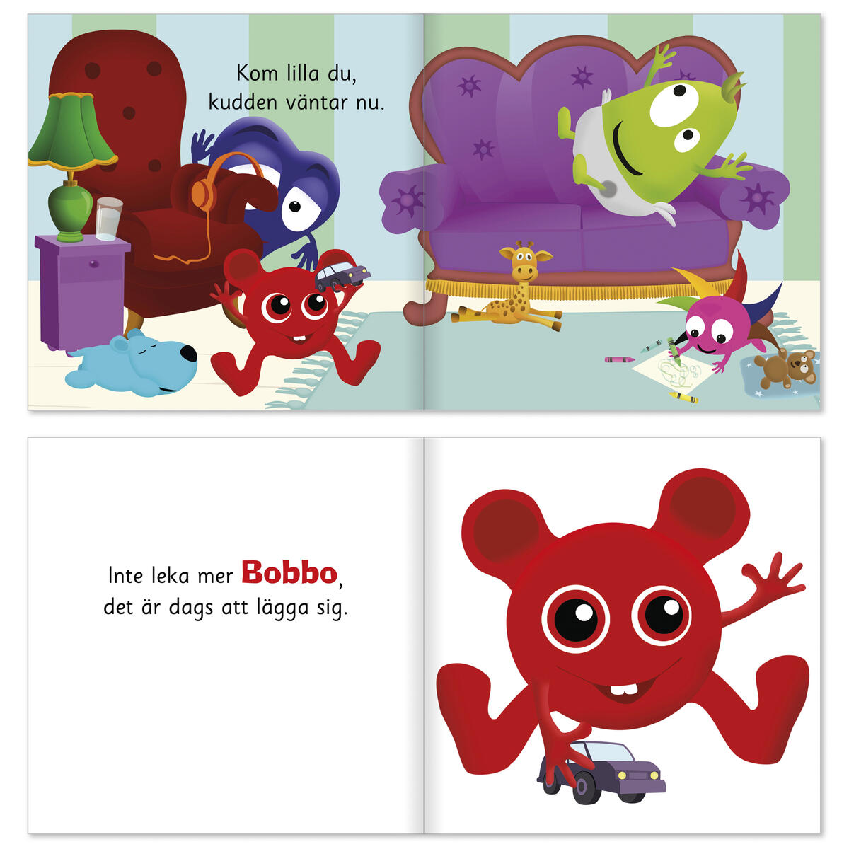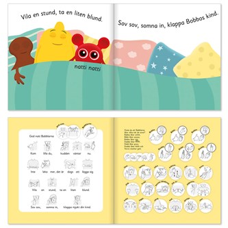 Tips 1! Till boken kommer en godnattleksak i form av ett gosigt bokfodral med små miniBabblarna för barnet att själv natta. Godnattleksaken är ett tillbehör som beställs på artnr 116629.