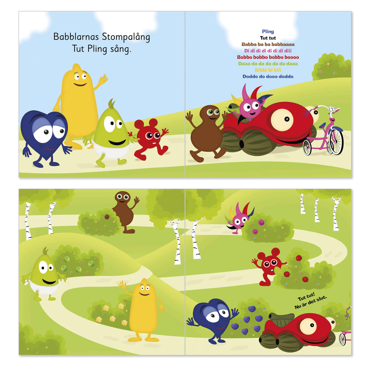 Följ med Tut och Pling runt i Babblarnas dal. Gissa vem de möter nu? Babblarna följer med en efter och en och alla figurerna dansar fram i en medryckande Stompalång! Boken fokuserar särskilt på begreppet ”Vem?” och barnet har som alltid när det gäller böckerna med Babblarna en tydlig plats i läsningen, och får gissa och fylla i. Det ingår även en ask med figurerna i tjock kartong. Babblarna är ett gäng färgglada figurer som kommit till för att göra språklek till ett spännande äventyr. Babblarna är skapade på ett sätt så att alla älskar dem och varken barn eller vuxna tänker på att det är just språk det fokuseras på i leken och äventyren i Babblarnas värld. Babblarna pratar sitt eget språk som helt bygger på ljudet i deras namn. Genom att lyssna på Babblarna när de pratar och genom att härma deras sätt att prata så tränas effektivt förmågan att använda betoningar och melodi i språket.I boken "Stompalång Tut Pling sång" övar barnet på att repetera de olika figurernas ljud om och om igen och på så sätt arbetas språkljuden in på ett roligt sätt. Mått: 20x20 cm.