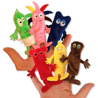 Babblarna som fingerdockor. Lek och låt fantasin flöda med dessa härliga små kompisar. Set om 6 Babblare i ett paket - Babba, Bibbi, Bobbo, Dadda, Diddi och Doddo. Storlek: 8–10 cm. PVC-fri.