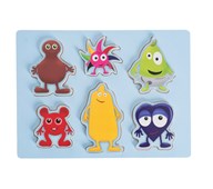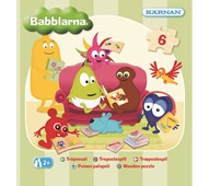 Formpussel med de sex figurerna Babblarna Babba, Bibbi, Bobbo, Dadda, Diddi och Doddo. När du lyfter pusselbitarna står varje Babblares namn i botten på pusslet. PVC-fri. 1–3 år.