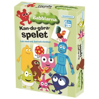 39 delar. Ett spel för de allra minsta spelarna där de i takt med sin utveckling kan spela på olika nivåer. Här har man roligt samtidigt som man lär sig nya saker, precis som alltid i Babblarnas värld! – härma djur, spela instrument, gör tecken, peka på färger och sjung sånger. Man tar små steg på egen hand, men kan när som helst be om hjälp från de andra spelarna. Alla barnen spelar tillsammans mot Klonk. Vuxna eller lite äldre barn måste vara med och hjälpa de yngsta spelarna. För 2-4 spelare från 2 år. Speltid ca 15 minuter. Innehåll: 36 kort, 2 spelarbrickor, färgtärning och spelregler. Ingående råvara FSC-märkt. PVC-fri.
