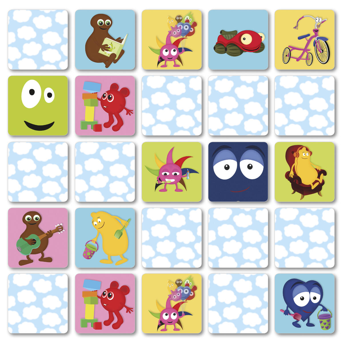 Med dessa 6 jättestora brickor spelar man bäst på golvet. Det är ett spel med enkla och tydliga bilder som passar den yngsta spelaren. Här får man både röra på sig, träna minnet, bildsinnet och lära sig att vänta på sin tur. Av FSC-märkt kartong. PVC-fri. Från 2 år.