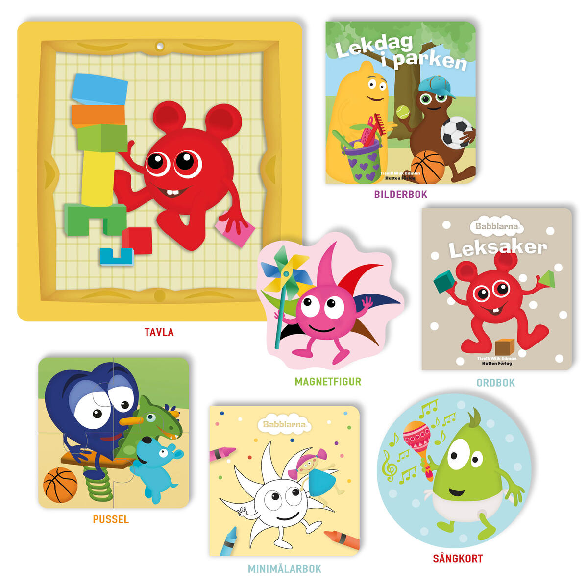 En ask fylld av rolig läsning, pyssel och musik! Asken innehåller: En bilderbok (hårdband), en ordbok (kartong), en magnetfigur, en fin tavla av tjock kartong att hänga på väggen, ett pussel, en minimålarbok och en sång med Babblarna. PVC-fri. Innehållet passar för alla småttingar som älskar Babblarna och är testade och godkända från noll år.