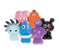 Säg hej till Babblarna! Ta med Babba, Bibbi, Bobbo, Dadda, Diddi och Doddo på äventyr! Roliga plastfigurer för fantasifull språklek. Runda, mjuka och färgglada blir Babblarnas figurer en klar favorit i leksakshyllan eller varför inte ute i skogen. Figurerna är 7-10 centimeter höga. Av PVC utan ftalater. Från 0 år. Vi rekommenderar att använda dem som leksaker, inte för att suga eller tugga på.