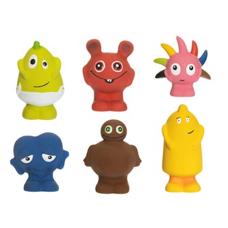 6 st/fp. Säg hej till Babblarna! Ta med Babba, Bibbi, Bobbo, Dadda, Diddi och Doddo på äventyr! Roliga plastfigurer för fantasifull språklek. Runda, mjuka och färgglada blir Babblarnas figurer en klar favorit i leksakshyllan eller varför inte ute i skogen. Dessa är gjorda av naturgummi som är ett härligt lent naturmaterial från gummiträd och de är målade med organiska giftfria färger. De är sköna för små händer och är både hållbara och biologiskt nedbrytbara. De funkar lika fint att leka med på golvet som i vattnet. OBS! Naturmaterialets färger kan förändras på grund av yttre omständigheter och man bör därför undvika att förvara produkten i direkt solljus. Om färgen upplevs ljusare efter en tid diska med ljummet vatten och diskmedel så återfår figuren sin ursprungliga nyans. Mått: 6,5-9 cm. PVC-fri. Från 0 år.