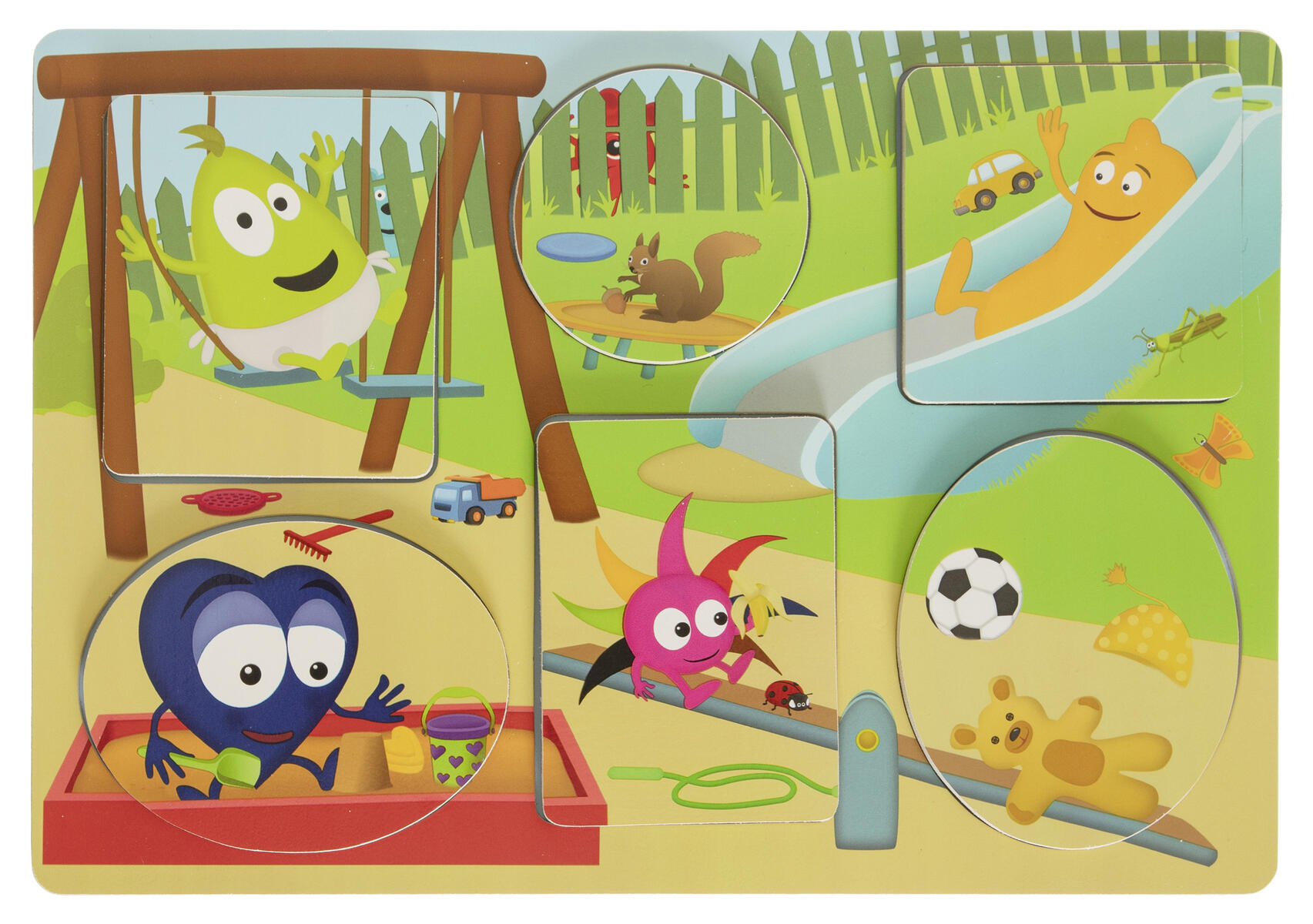 Formpussel med 6 tjocka pusselbitar i olika former med motiv av Babblarna, Babba, Bibbi, Bobbo, Dadda, Diddi och Doddo. Pedagogiken bakom detta pussel är att Babblarna gör olika saker som sedan följs av en händelse som framkallar en känsla. Detta uppmuntrar vuxna att tillsammans med barnet prata om känslor. Det hjälper också barnet att utveckla och förstå sina egna och andras känslor. Mått: 30x21 cm. Material: FSC-trä. PVC-fri. Lämpligt för barn 1-3 år.