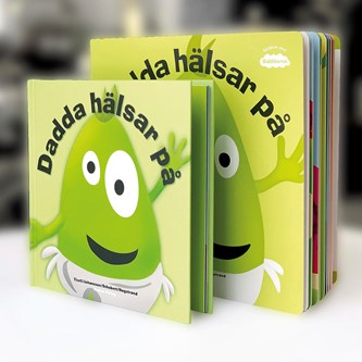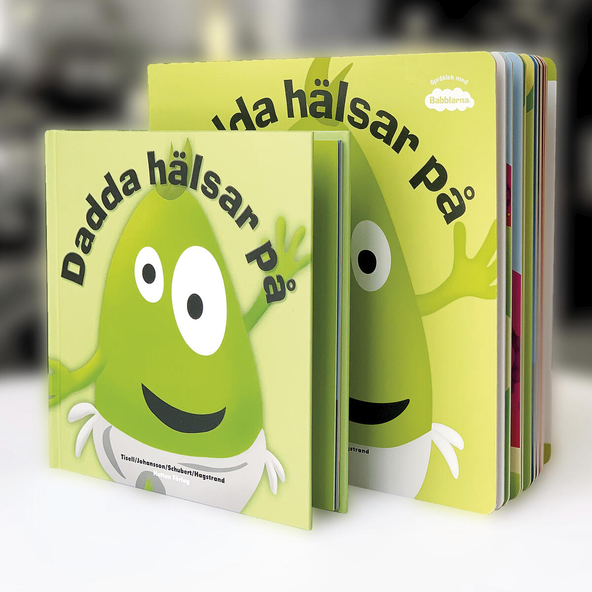 Dadda hälsar på som kartongbok i stort format. Fem av Babblarnas favoritböcker finns nu som kartongböcker i stort härligt format. Mer hållbara och lämpliga för att läsas i barngruppen. Format 24x24 cm, sidor av kartong med rundade hörn. 32 sidor. Längst bak i boken finns teckenillustrationer för orden i boken. PVC-fri.
