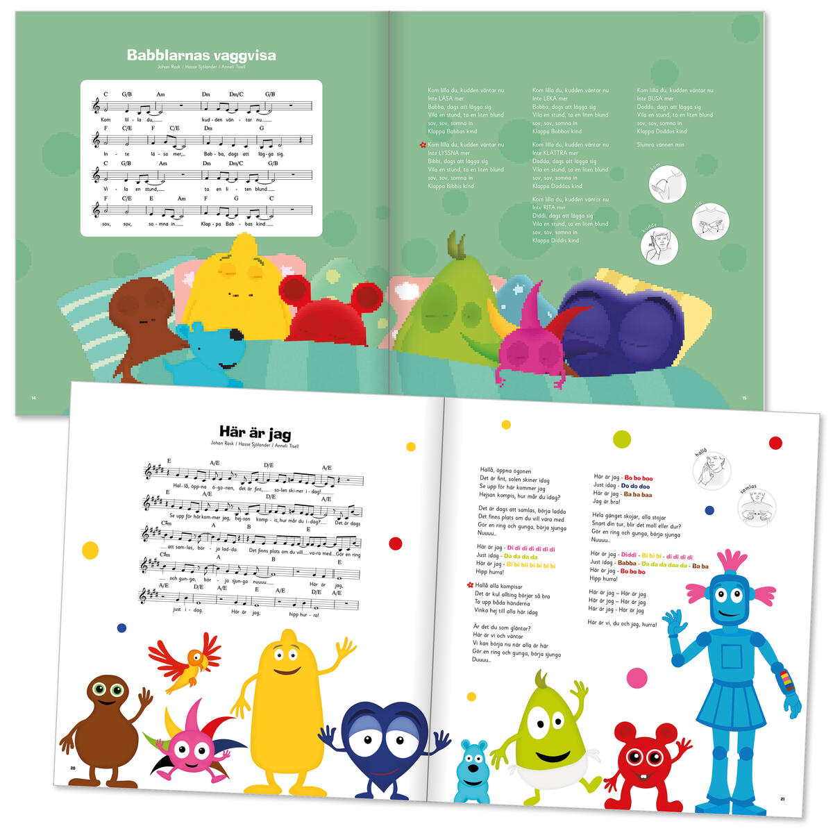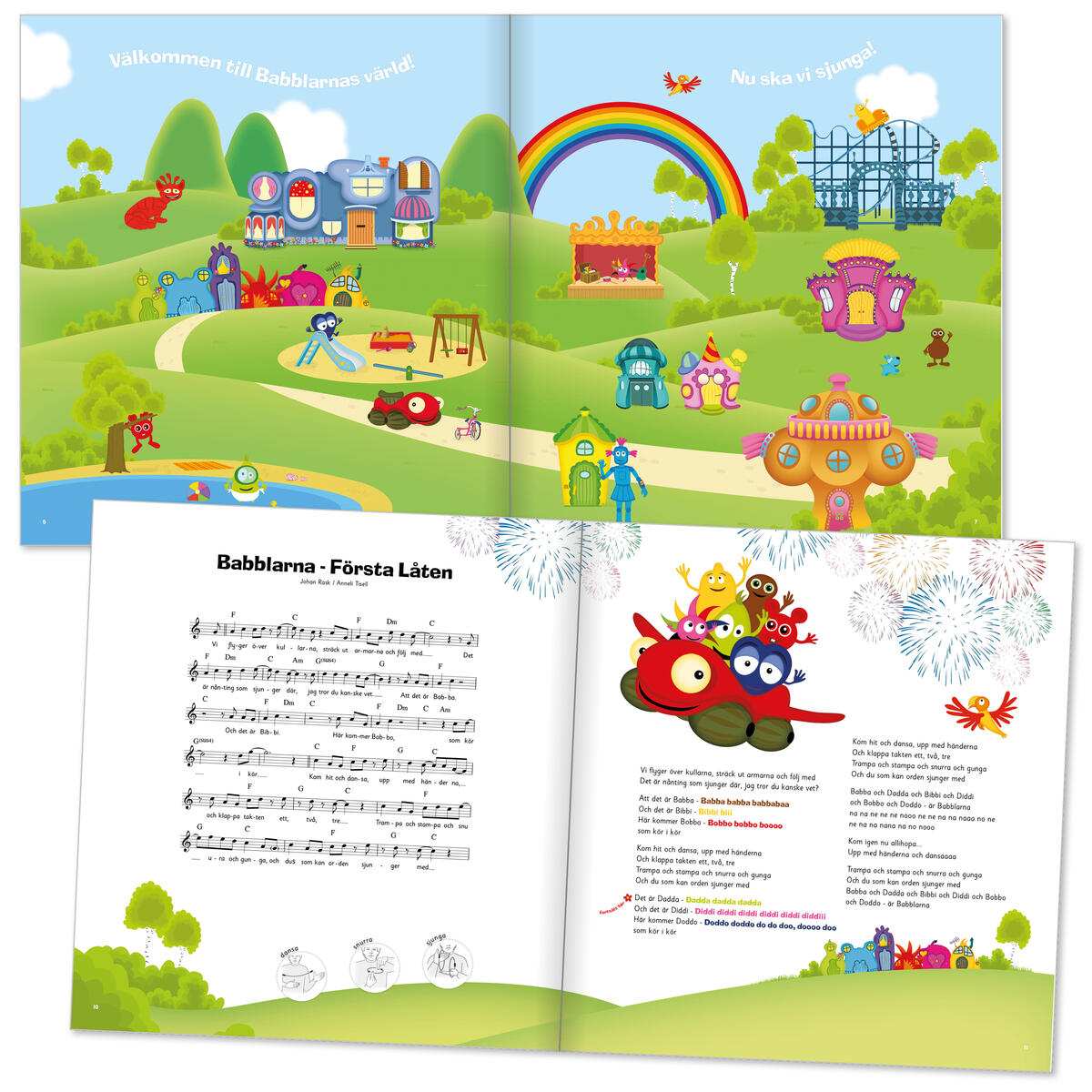 Spela och sjung Babblarnas populära och svängiga låtar! I denna stora och härligt illustrerade notbok hittar ni noter, ackord och text till Babblarnas låtar, så att ni kan spela och sjunga alldeles själva. Dessutom ett utmärkt sätt att leka med språket och lära sig nya saker på ett roligt vis. I notboken hittar du också teckenillustrationer för vissa viktiga ord. 40 sidor, 24x26 cm. Babblarnas musik finns också på cd-album, Youtube och Spotify. Låtarna används även till rolig motorisk språklek på sprakgympa.se