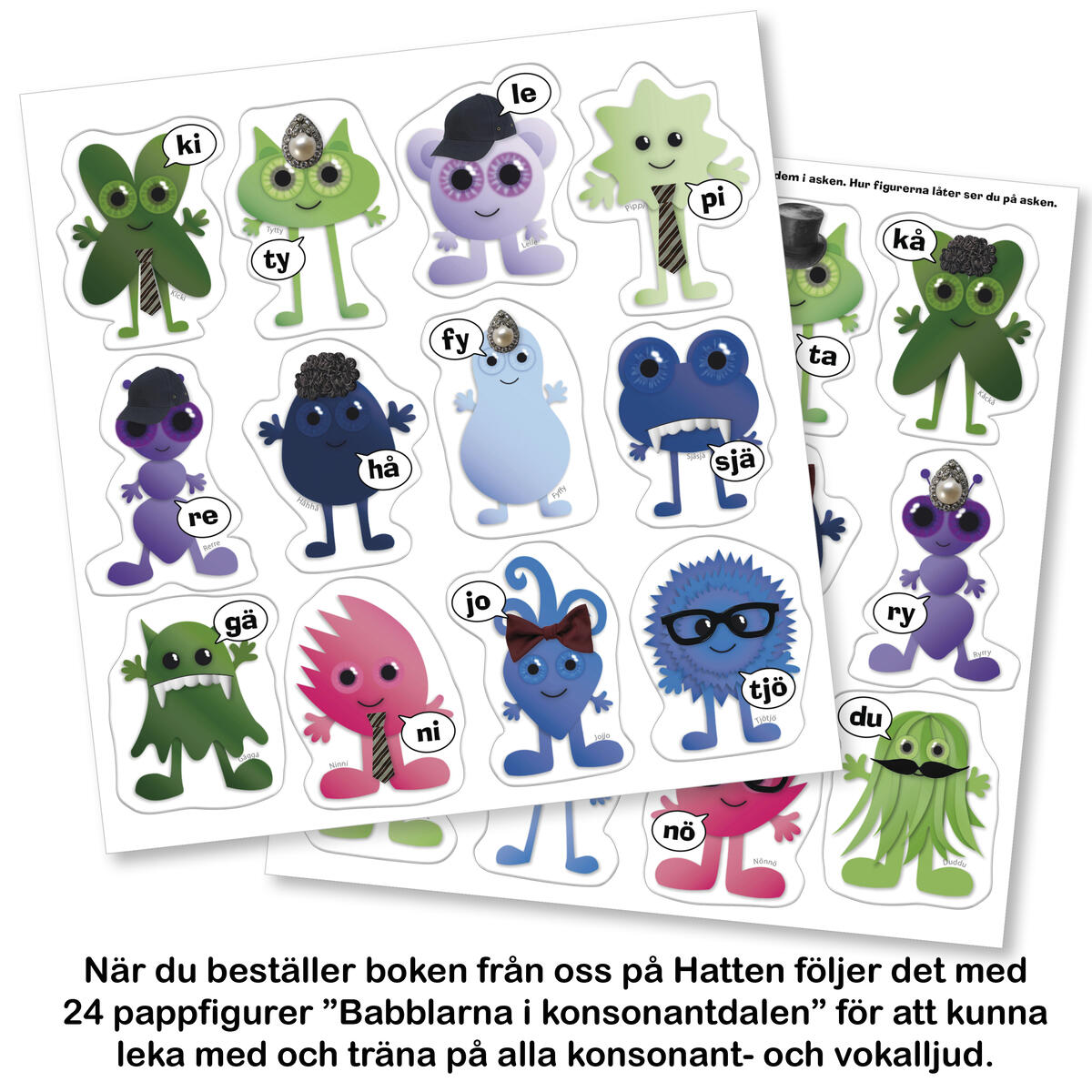 Ett ark med figurer från Babblarna i konsonantdalen. Kan användas som komplement till boken 129609 Fingerresan eller så köper man hela setet på artikelnummer 114641.