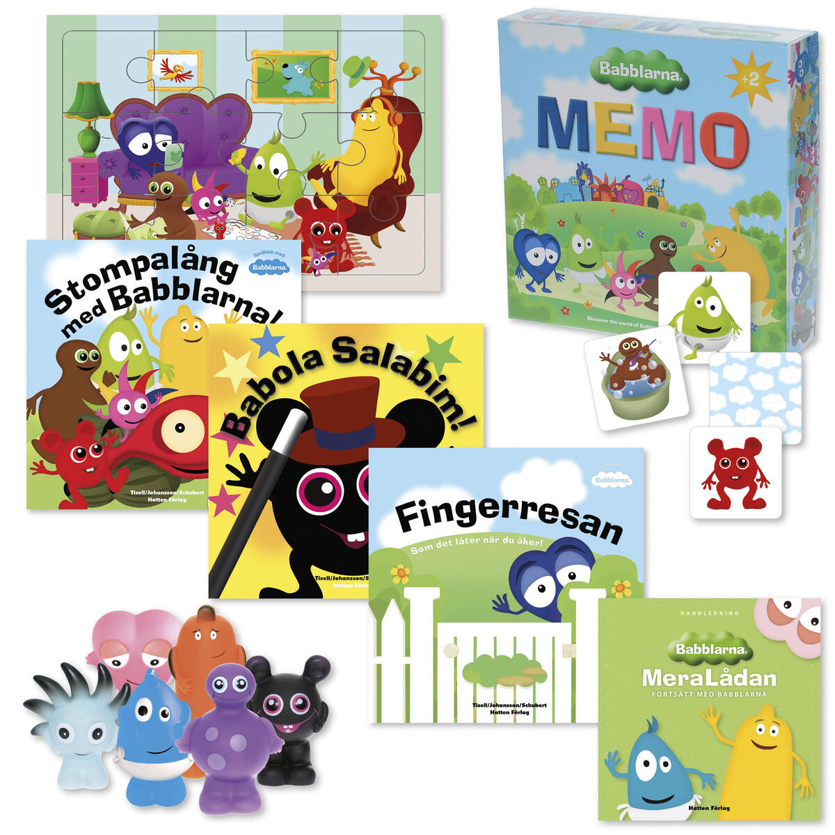 En härlig låda fylld med material att prata kring och leka med. Lådan innehåller följande: Babblarna fingerdockor - lek och låt fantasin flöda! 8-10 cm. Bilen Tut - vem vill åka med? Alla fingerdockorna får plats! Tittutpussel med Babblarna som gömmer sig bakom buskarna i Babblarnas dal, men vips tittar de fram när du vänder på pusselbiten. Roligt tittutpussel för de minsta. Pratboken Daddiddoo Babblarna där vi får träffa Tut och Babblarna och titta in i Babblarnas hus, men hela tiden är det någon som saknas. Vem? Peka, berätta och babbla på! Pratboken Babbibboo Babblarna. Vad gör Babblarna? Vem gömmer sig bakom soffan? Vem är det som har mustasch? Vem åker högst i berg och dalbanan? Det här är en bok som inbjuder till massor av prat om de olika figurerna i roliga och lockande miljöer. Peka, berätta och babbla på! Babblarnas pratböcker är i huvudsak textlösa och syftet är att vuxna och barn tillsammans ska utforska och prata om varje uppslag och det som händer i bilderna. Roligt och lärorikt för småttingar. Lådan innehåller också en lättsam handledning med tips och idéer för hur materialet kan användas i gruppen. Tips! För att arbeta strukturerat med språkträning med barn i behov av extra stöd för sin språkutveckling, så rekommenderar vi att komplettera paketet med boken "Tal & språkträning i Babblarnas värld" av Iréne Johansson artnr 129608.