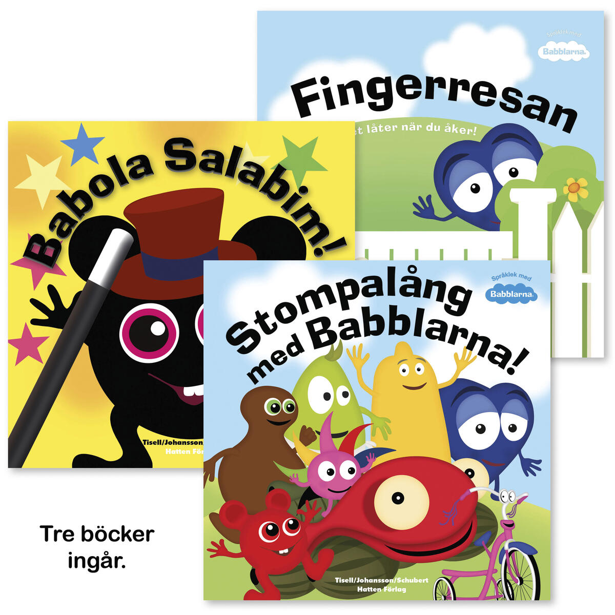 Ett paket med de populära XL-böckerna från Babblarna. Hållbara för de minsta att bläddra i själva och stora så att många kan titta samtidigt. Innehåller: I Bobbos väska, Var är Babbas saker, Dadda hälsar på, I Babblarnas hus, Fingerresan och I Babbas byrå.