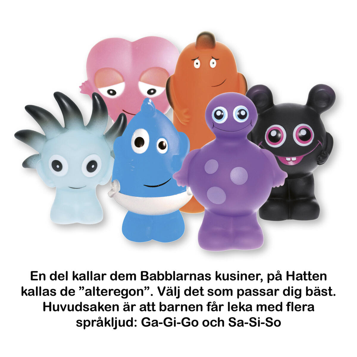 6 st/fp. Mjuka kappor föreställande Babblarna. Kardborreknäppning gör dem enkla att ta av och på. Av mjuk polyesterplysch. PVC-fri. Storlek 86-110. Lagom för åldrarna 1-4 år.