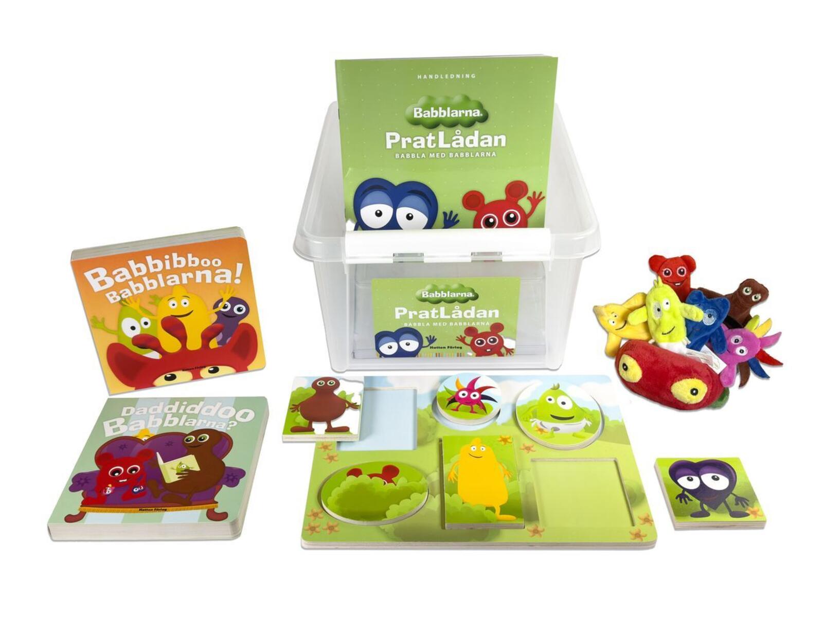 I Babblarna Första Lådan ingår: Fyra böcker om Babblarna (Dadda hälsar på, I Babblarnas hus, I Bobbos väska, Var är Babbas saker?, Babblarnafigurerna i naturgummi, Formpussel, Babblarna Lotto och en praktisk låda att förvara alla produkterna i. Dessutom ingår en lättsam handledning som ger tips och idéer för hur materialen används. En fin A3-affisch följer med som extra bonus. En perfekt start för att sätta igång med språklek där fantasin får flöda fritt. För att arbeta strukturerat med språkträning med barn i behov av extra stöd för sin språkutveckling, så rekommenderar vi att komplettera språklådan med boken "Tal & språkträning i Babblarnas värld" av Iréne Johansson artnr 129608.