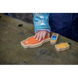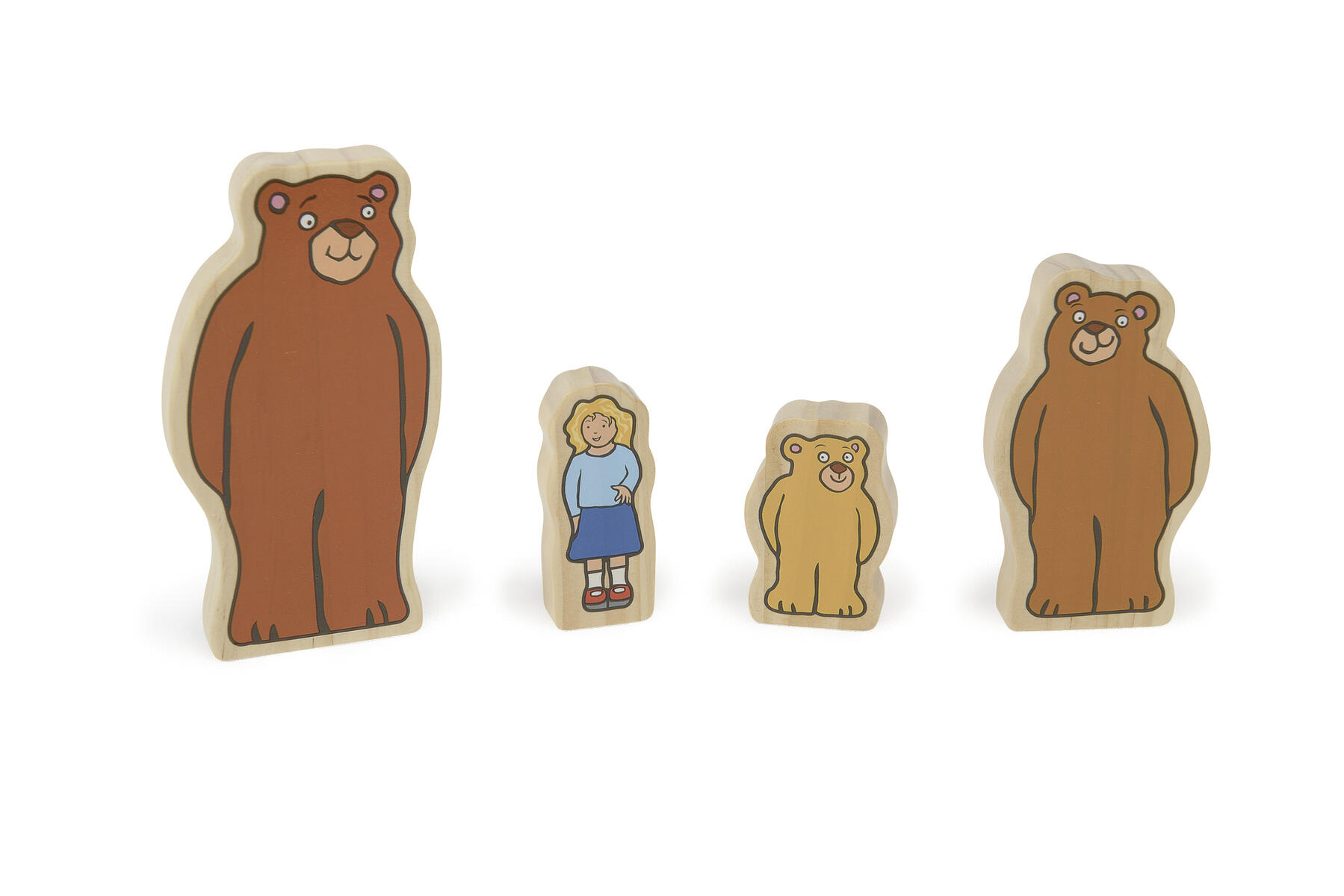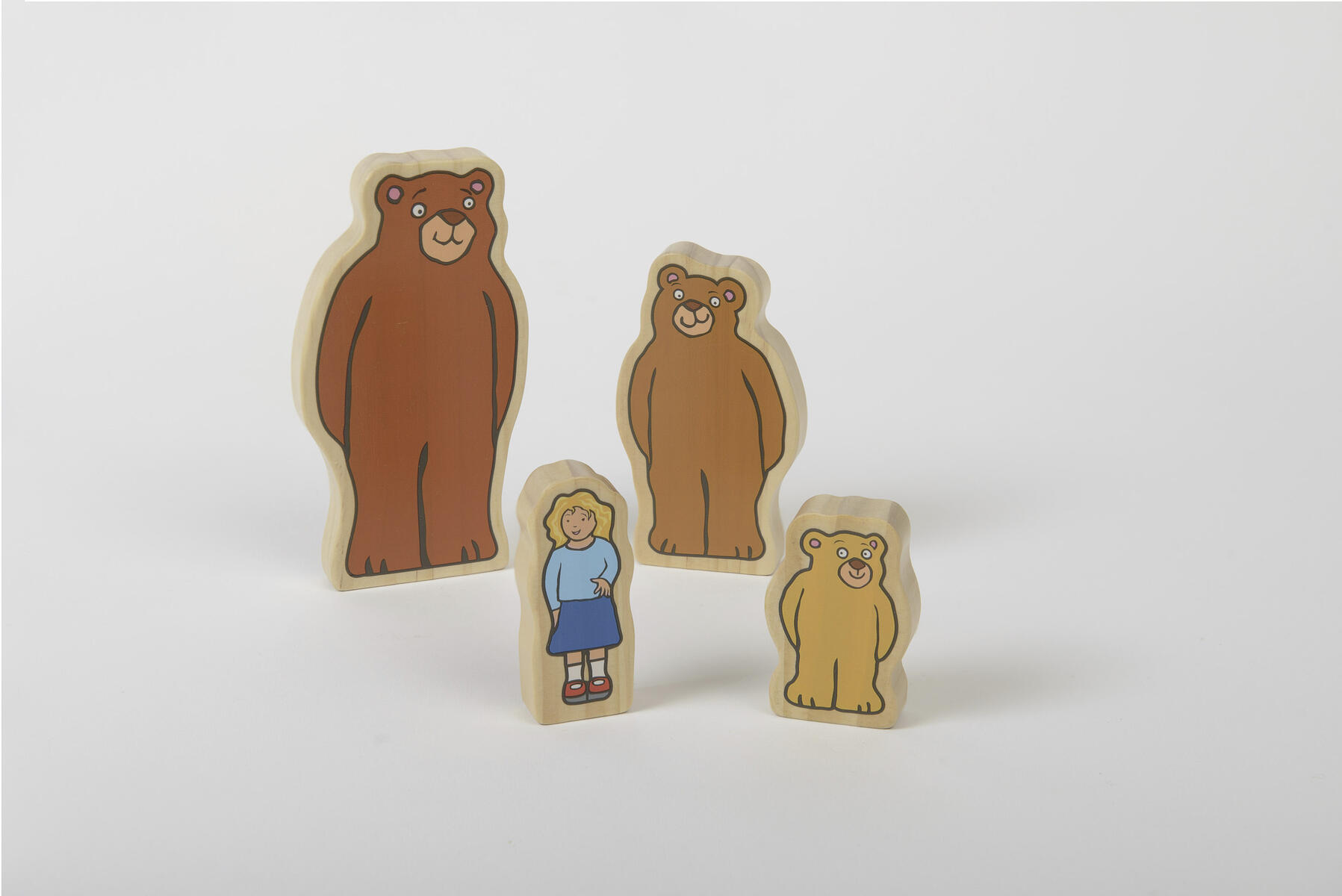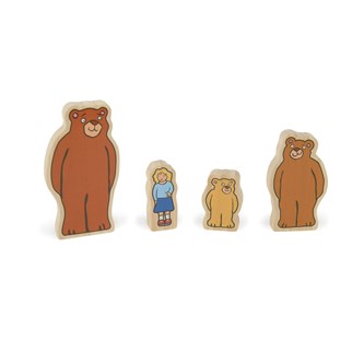 Dessa fina sagofigurer av trä hjälper barn att återberätta historien om Guldlock och de tre björnarna och skapa nya spännande versioner av denna traditionella berättelse. De kan även användas av pedagogen för att få mer liv i berättandet. sagofigurerna är dubbelsidiga. PVC-fri. Från 3 år.