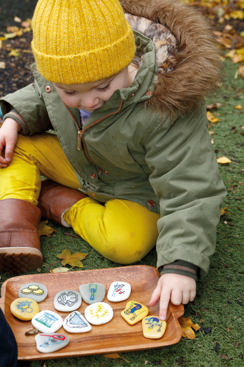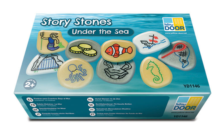 Utforska sagoberättandets magiska värld och hur man strukturerar en berättelse med illustrerade sagostenar. 13 taktila stenar som är ca 50 mm stora. Barnen väljer karaktärer, miljöer och objekt för att skapa ett ramverk till sin saga. PVC-fri. Från 2 år.