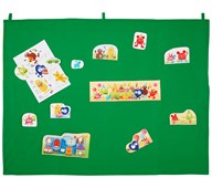 En stor flanoduk i grönt och gult som kan fästas på väggen, bordet eller golvet. Perfekt som hjälpmedel vid berättande, matteövningar eller språkutveckling. Motiv ingår ej. Mått: 90x120 cm. PVC-fri. Från 3 år.