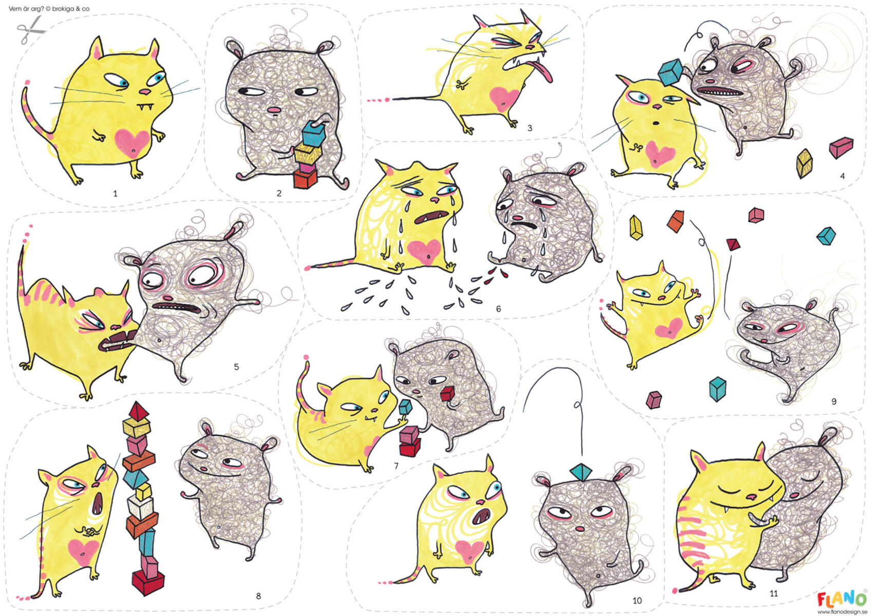 En lättläst saga om stora känslor för de mindre barnen. Om hur arg och ledsen man kan bli när man ska leka tillsammans. Och om hur roligt man kan ha! Färdigtryckta flanobilder. Svensk sagotext ingår. Av FSC-märkt papper. PVC-fri.