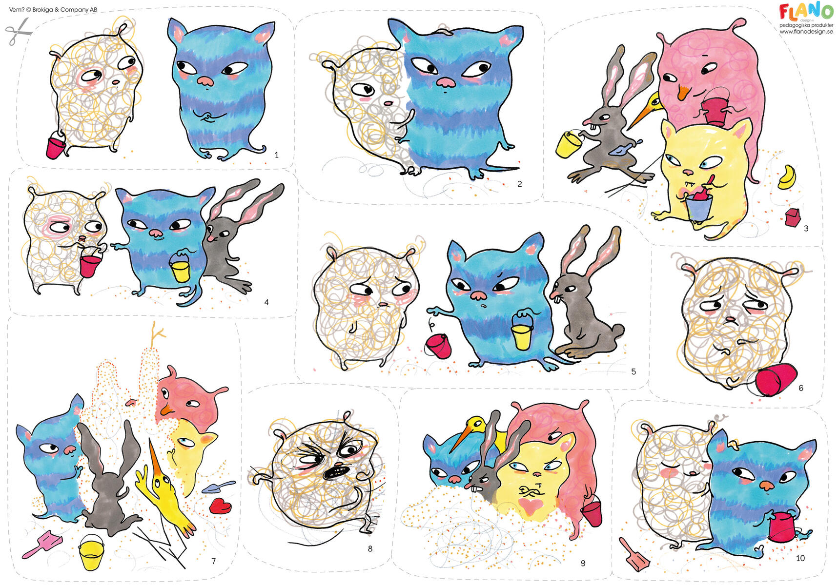 En lättläst saga om stora känslor för de mindre barnen. Om hur arg och ledsen man kan bli när man ska leka tillsammans. Och om hur roligt man kan ha! Färdigtryckta flanobilder. Svensk sagotext ingår. Av FSC-märkt papper. PVC-fri.