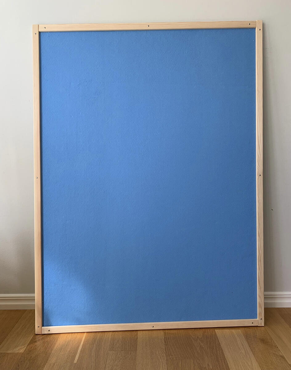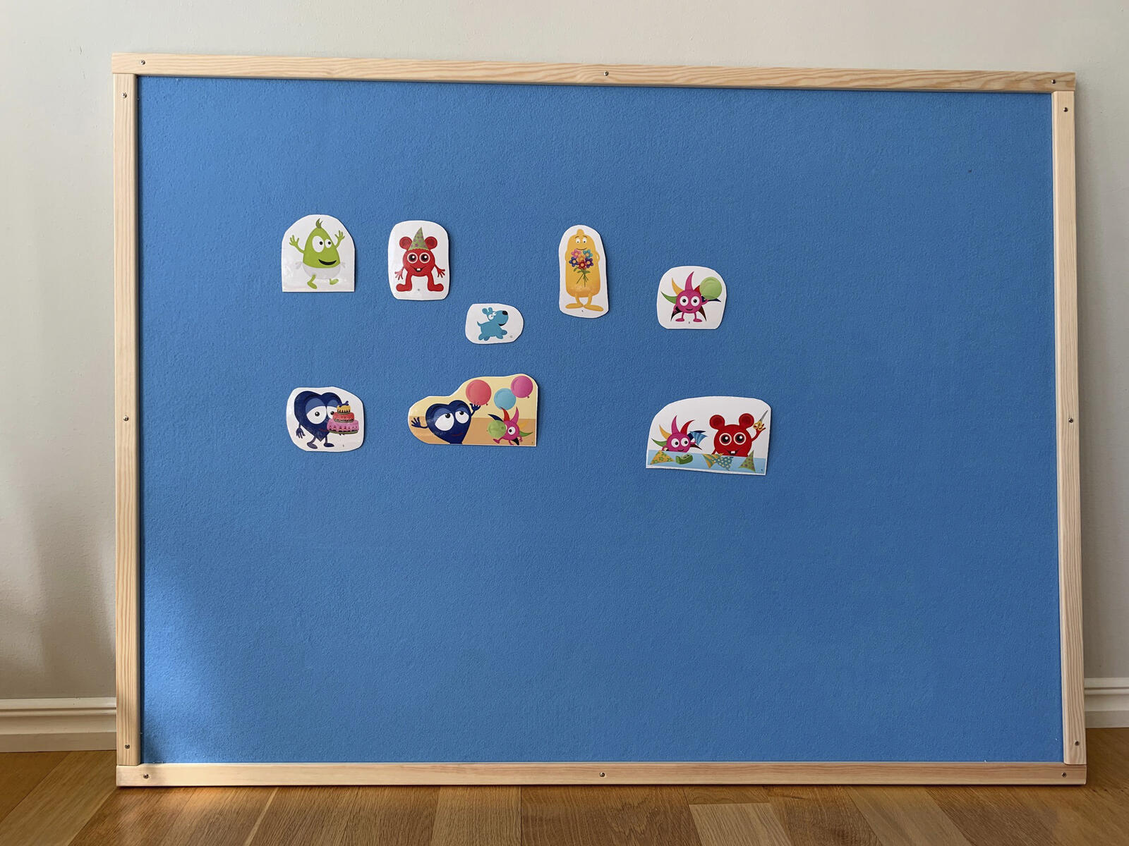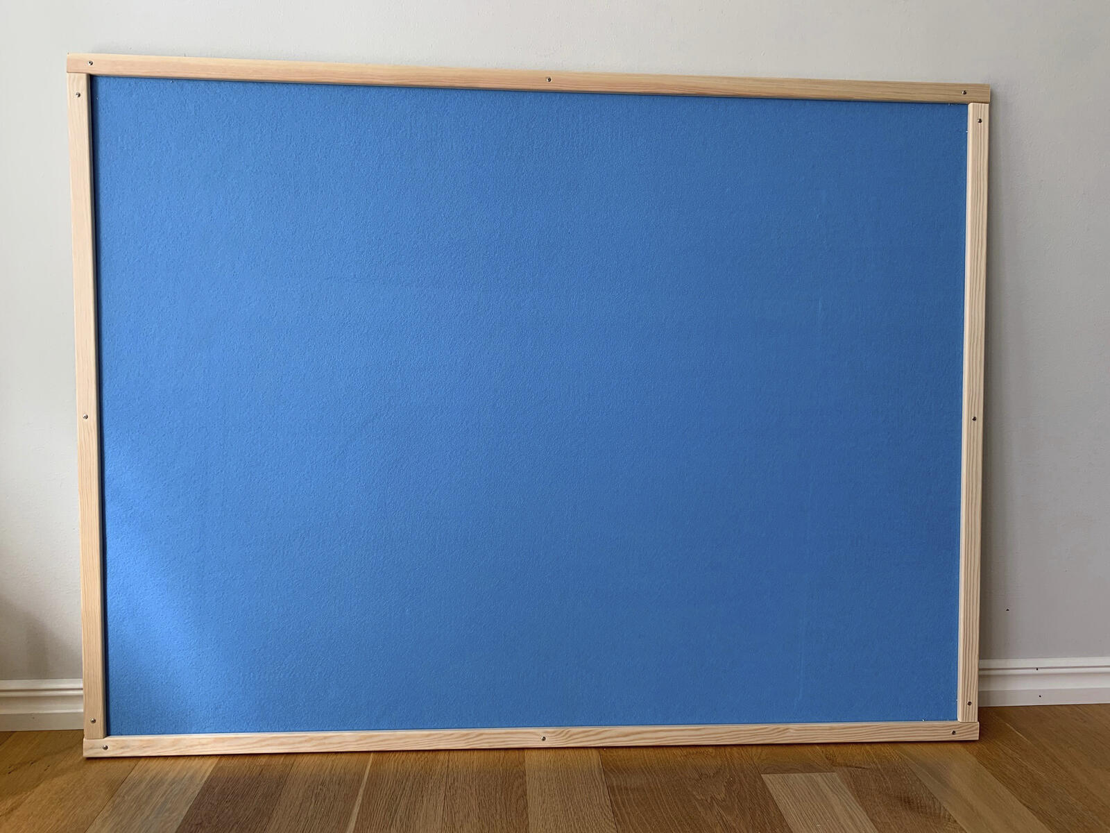 En flanellograftavla klädd med grå filt och svart träram. Med stödben på baksidan så att den kan stå fritt, samt svart upphängningsband om man vill hänga den på väggen. Mått: 90x80 cm. Av 3 mm MDF-skiva. PVC-fri.