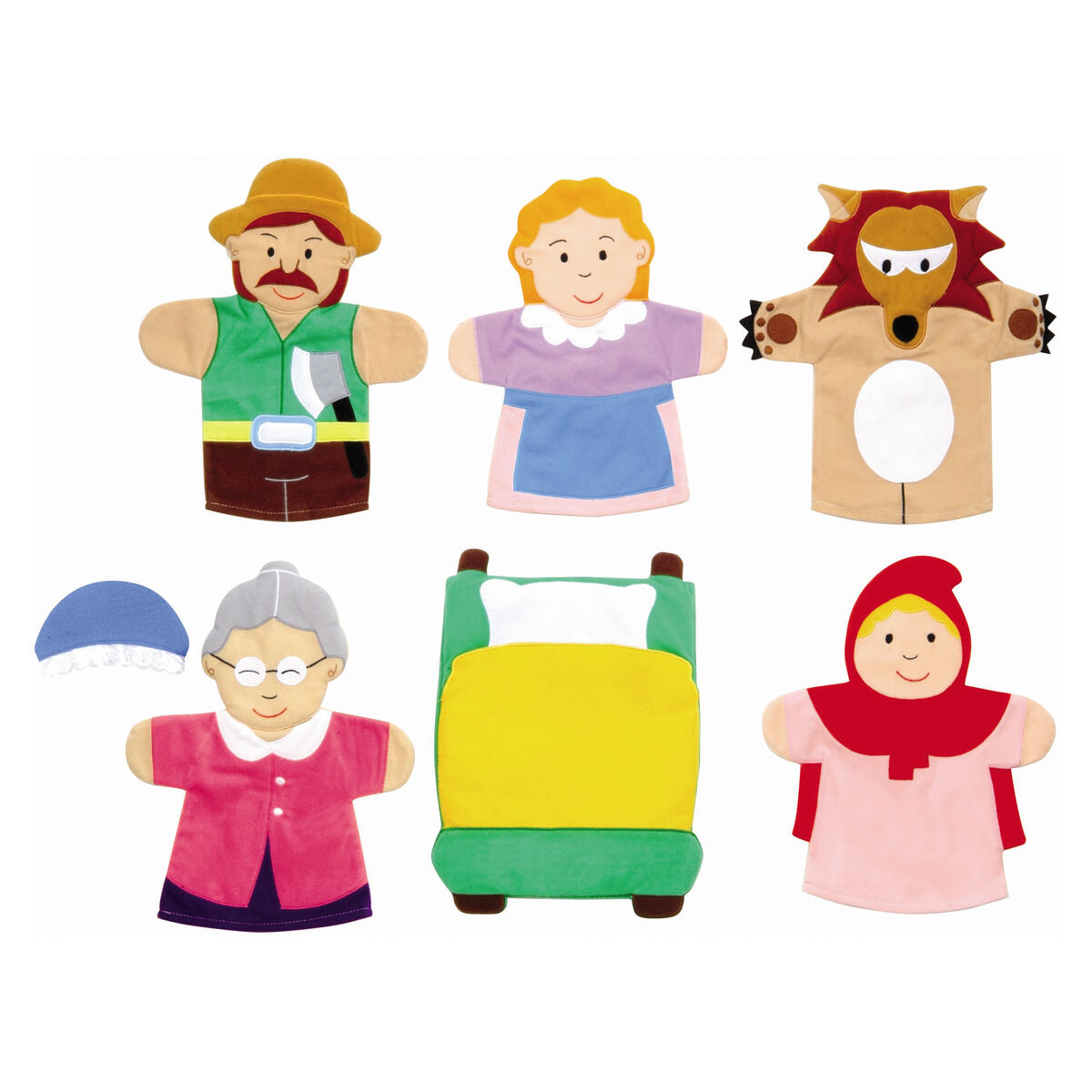 Fina och välsydda handdockor till den kända sagan om Rödluvan. Genom att använda handdockor skapar man mer liv i berättandet. Av polyester. PVC-fri. Från 3 år.