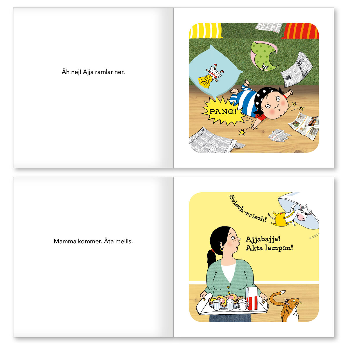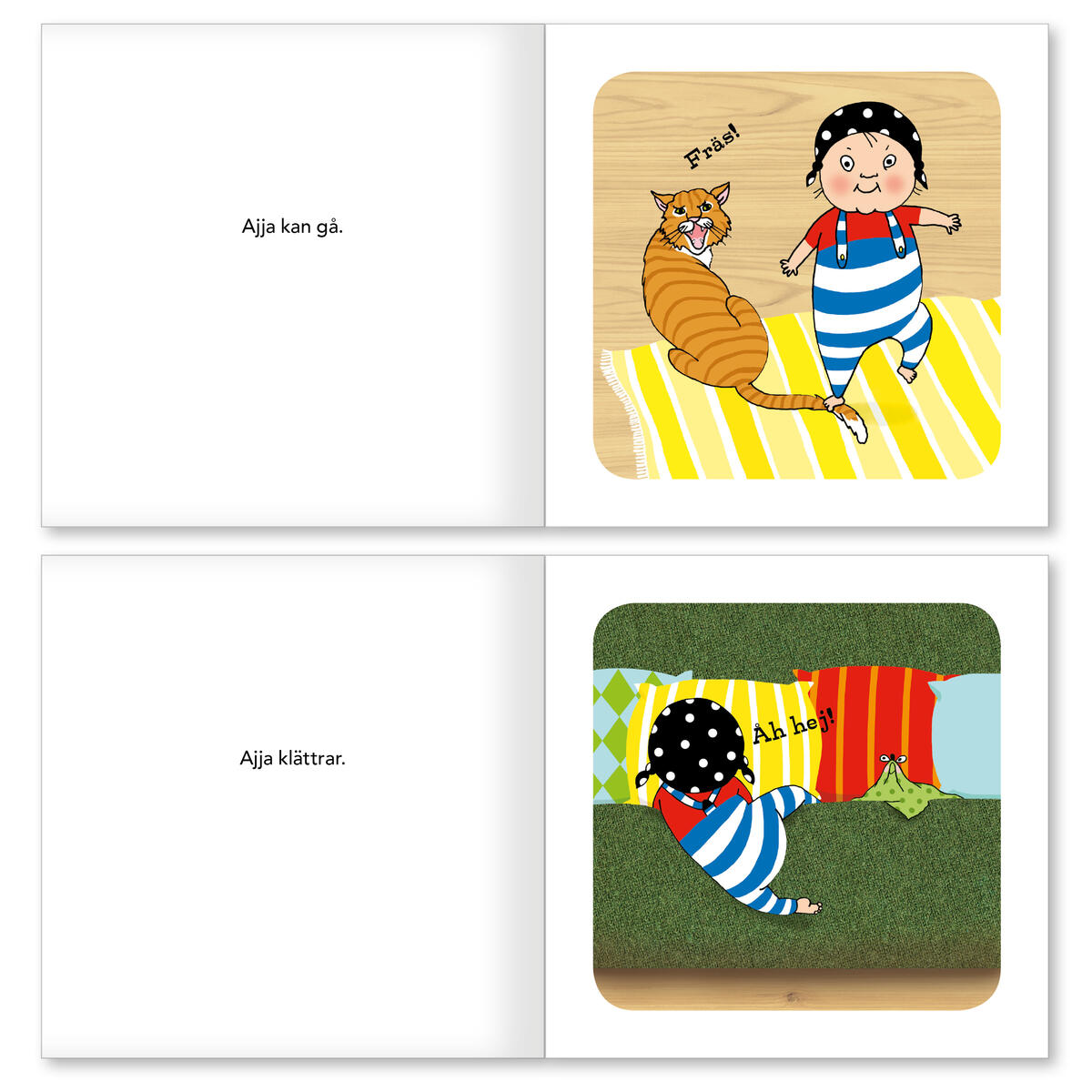 Följ med in i en värld full av upptåg! Boken "Ajja & Bajja" är den första boken i en språkstimulerande serie om ett charmigt och busigt gäng. Boken riktar sig till våra yngsta och förutom att roa med ett skojigt vardagsäventyr så kan den användas för att bygga ordförråd och locka fram barns första meningar. Många ljudhärmade ord gör att även de yngsta kan vara med och berätta och längst bak i boken finns uppslag med teckenillustrationer för orden. Där finns också en kort handledning i hur man kan stötta små barns språkutveckling. Böckerna om Ajja & Bajja är skrivna av logopeden och författaren Elvira Ashby. Med osviklig känsla för medryckande berättelser och stor kunskap om språkutveckling har Elvira tillsammans med illustratör Karin Holmström skapat en serie böcker, leksaker, musik och spel som både roar och stöttar språkutvecklingen. Av FSC-märkt papper. 40 sidor, 16x16 cm. Den som vill ha tecknen på varje uppslag kan komplettera med teckenremsor (artikelnummer 113666).