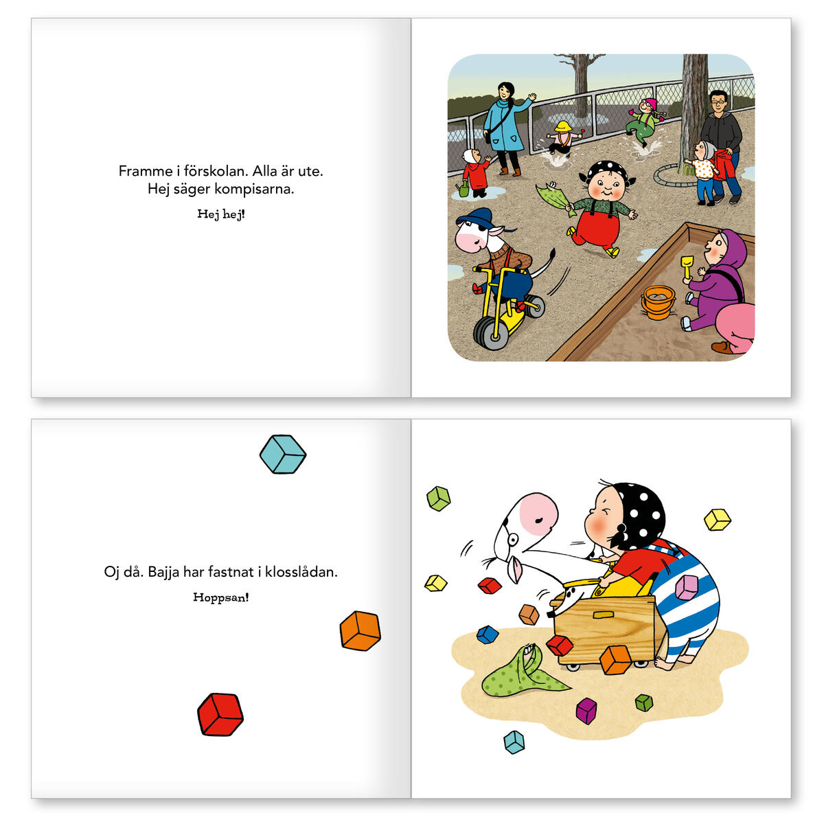 Följ med våra busfrön Ajja och Bajja till förskolan! Där är det samling, lek och mat, precis som det brukar, men lite bus också förstås. Boken passar utmärkt i samband med inskolning och för att hjälpa barn bygga ordförråd kopplat till förskolans värld. Många ljudhärmade ord gör att även de yngsta kan vara med och berätta, och den som vill teckna hittar teckenillustrationer längst bak i boken. Där finns också en kort handledning i hur man kan stötta små barns språkutveckling. Böckerna om Ajja & Bajja är skrivna av logopeden och författaren Elvira Ashby. Med osviklig känsla för medryckande berättelser och stor kunskap om språkutveckling har hon tillsammans med illustratör Karin Holmström skapat en serie böcker, leksaker, musik och spel som både roar och stöttar språkutvecklingen. Av FSC-märkt papper. 40 sidor, 16x16 cm.