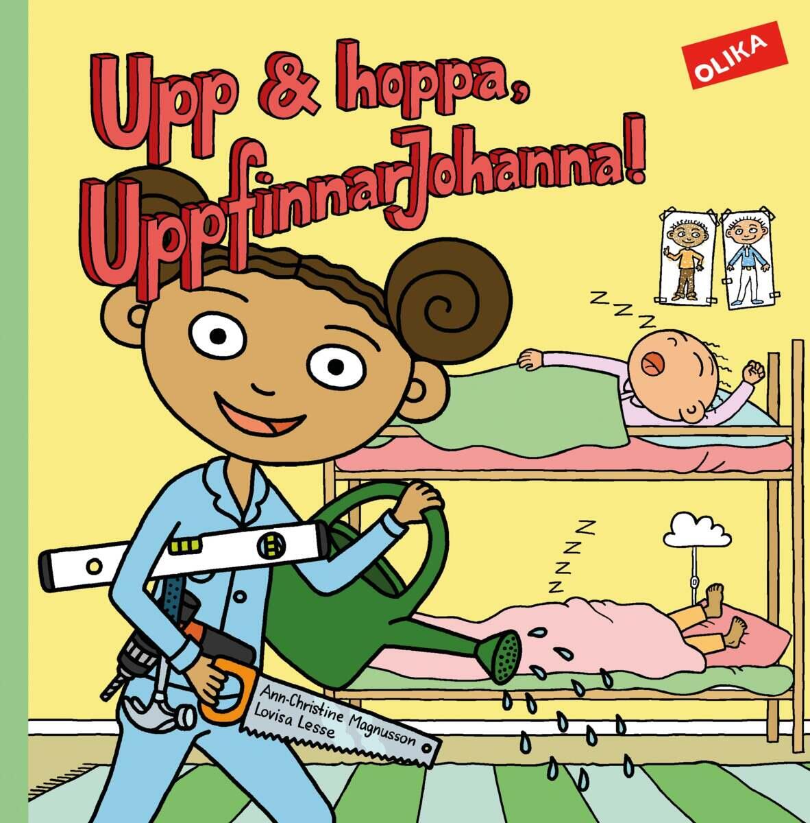 Johanna kan uppfinna precis vad om helst. Nu har hon en ny idé! Johannas småsyskon Sten och Stanley är så trötta att de kommer försent nästan varje dag till skolan. Här behövs en uppfinning. Johanna gör en ritning och plockar fram lite saker som kan behövas, en såg, brädor och en tuta. 40 sidor. Mått: 20x20 cm. Ålder 3-6 år.