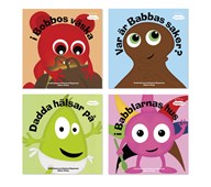 Ett stort paket med 10 böcker från Babblarna: Var är Babbas saker?, I Bobbos väska, Kalas hos Babblarna, Dadda hälsar på, I Babblarnas hus, I Babblarnas prylbod, Natti natti Babblarna, Fingerresan, Babola Salabim och Stompalång med Babblarna.